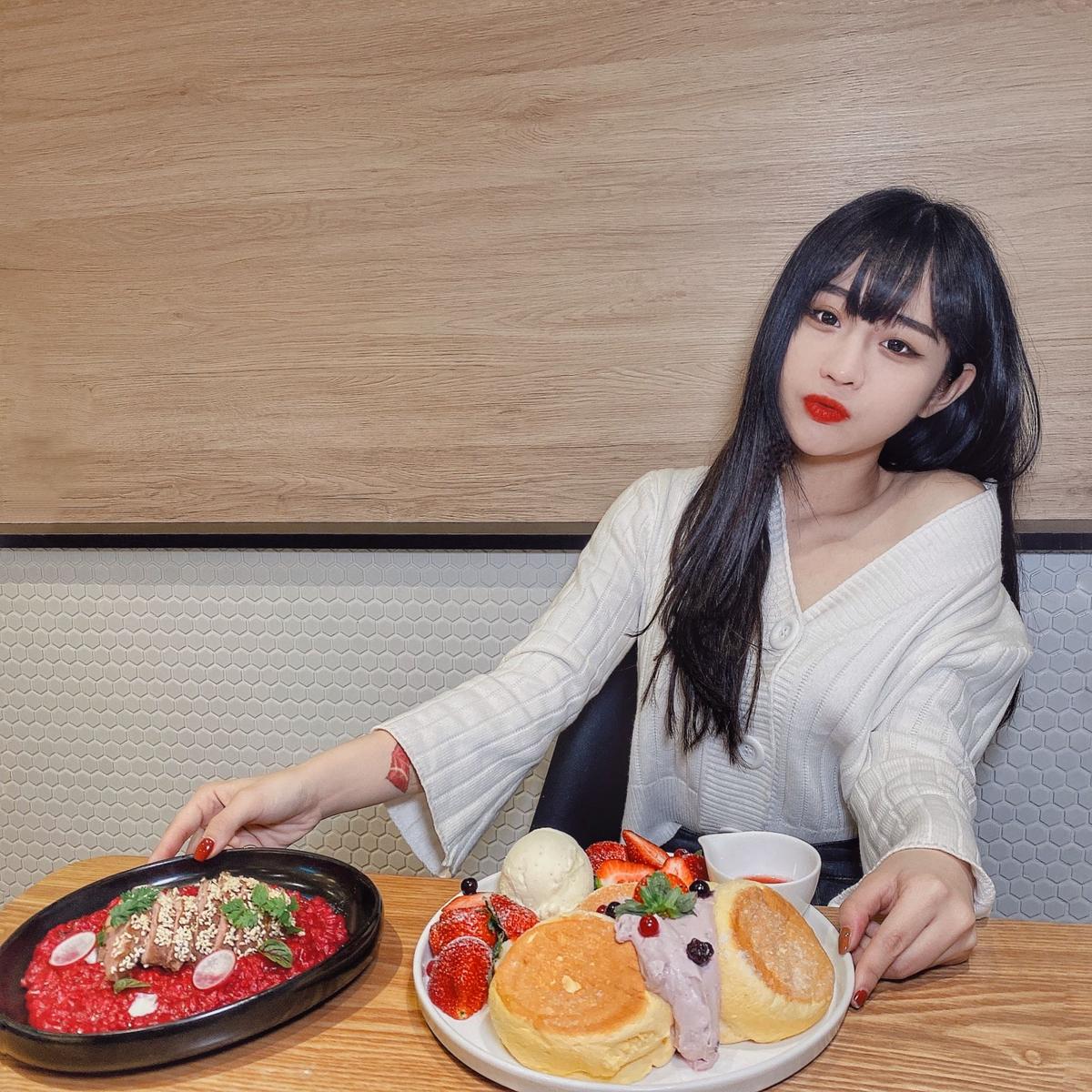 這款是季節限定,售完為止,因為每天的水果量有限,店家選用的草莓超級大顆之外也超級甜的,除了草莓之外更添加了藍莓、野莓、紅醋栗、黑醋栗以及ㄧ大球的香草冰淇淋,真的是豐富到爆耶!至於主角厚鬆餅,吃起來非常軟嫩,很像海綿蛋糕的口感,能製作出這種口感真的超級有特色,超級讚👍