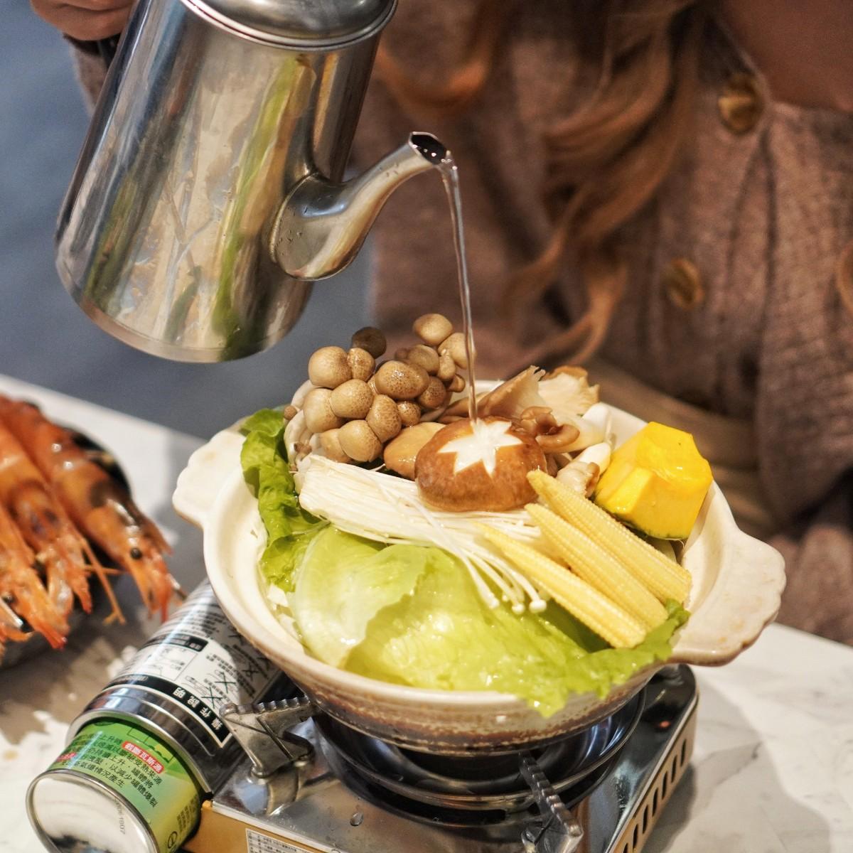 湯底由日式沙丁魚乾跟帶皮骨頭肉熬煮而成,喝起來清爽不膩,是會讓人想一直喝下去的那種口感!一旁還會附上超狂的6隻阿根廷赤蝦,下鍋煮後的湯頭變得超級鮮🥰