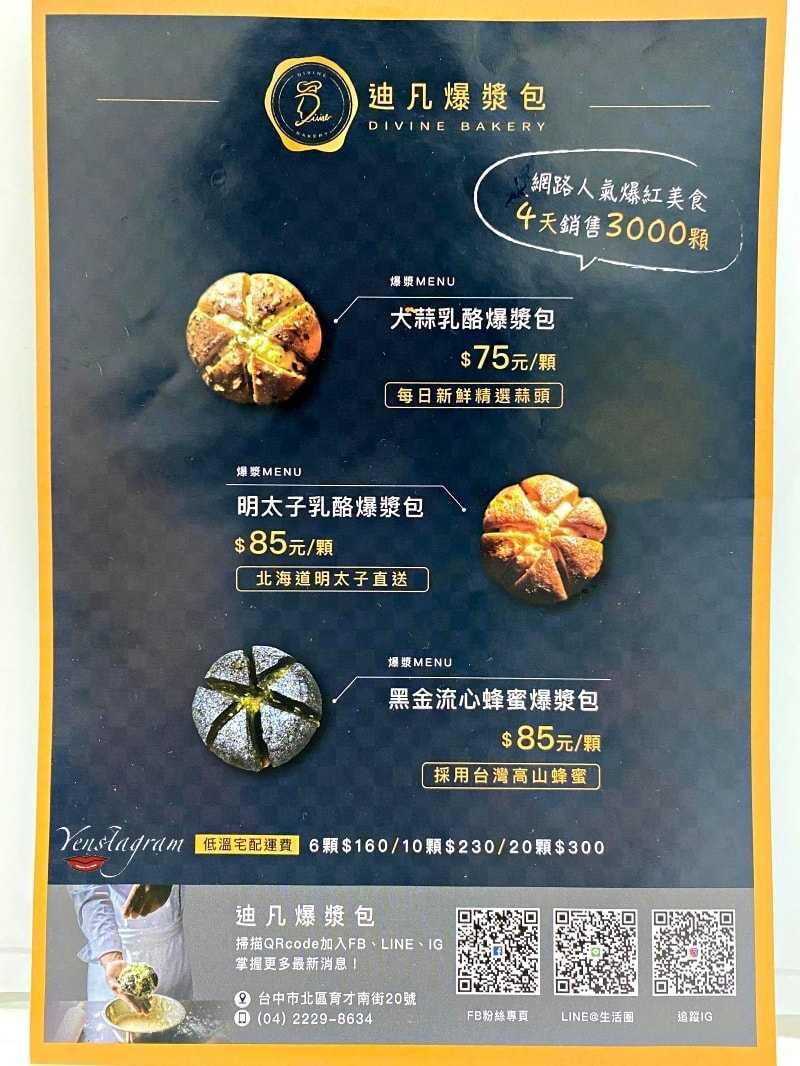【台中.北區好料】台中一中麵包店推薦、台中北區麵包店推薦👉「迪凡爆漿包 Divine Bakery」🍞真材實料爆漿包,三種口味開箱分享🔍低溫宅配快速又方便,最愛明太子口味😍