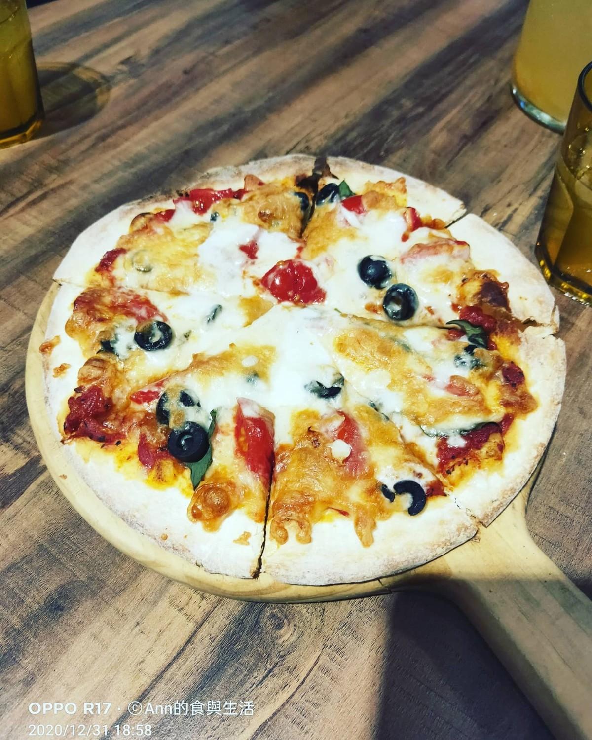 經典瑪格Pizza的口感真的是超級好,餅皮薄脆、內餡就是經典的番茄和九層塔再搭上些許的黑橄欖真的蠻好吃的,而且很難得我能夠吃完盡乎一盤Pizza。"奶油松露燉飯"的松子味道蠻重的,所以我只淺嚐了一口,相較之下我更喜換Pizza。(不過我本來就愛吃Pizza)