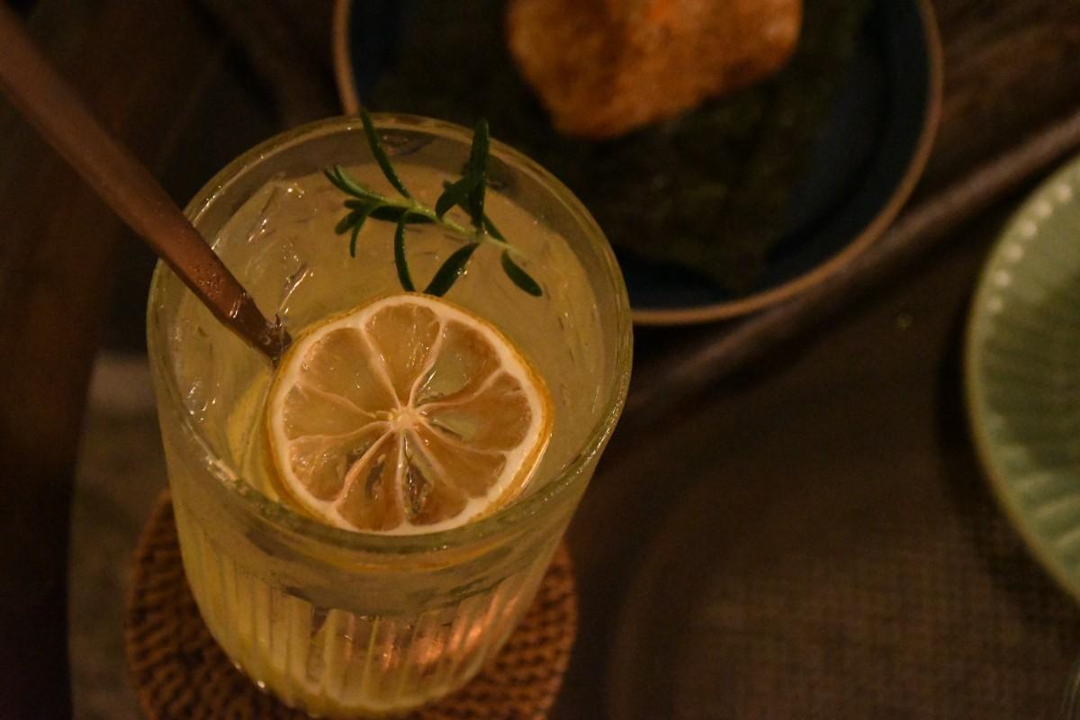 這裡有種令你不自覺放輕音量的美好,我們的座位是樓梯下方的雙人席,綠色的布沙發搭配阿嬤家會見到的小圓玻璃茶几,變相強迫坐在兩邊的我們靠近桌子和彼此,無論是交談或是用餐都有更親密的感覺。