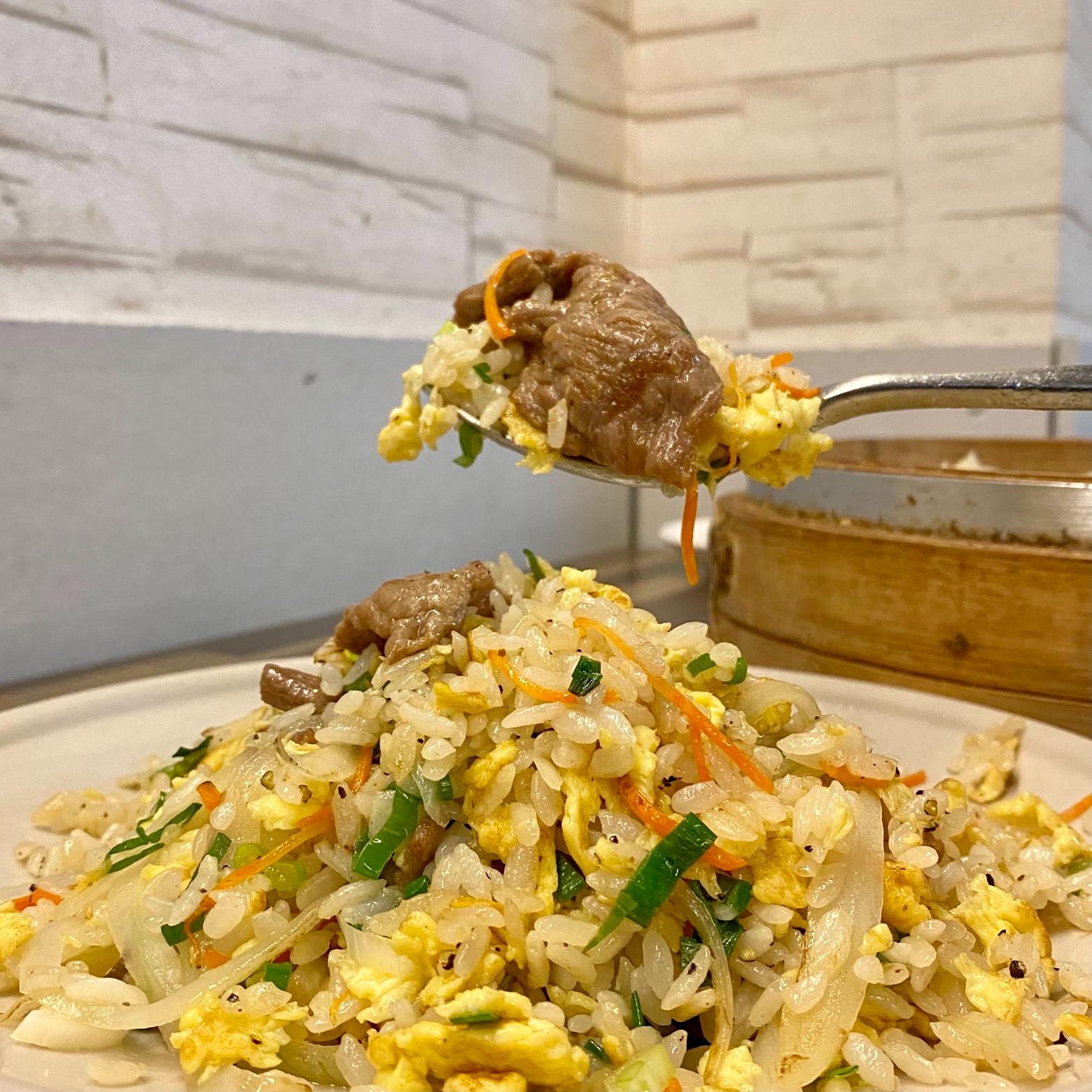 炒飯炒得很香 有把蛋香味炒出來 不會過鹹油膩 而且肉絲蛋炒飯裡還加了很細的木耳絲 炒飯裡的蔬菜種類也很豐富 好吃又健康 牛肉炒飯相對較普通一點