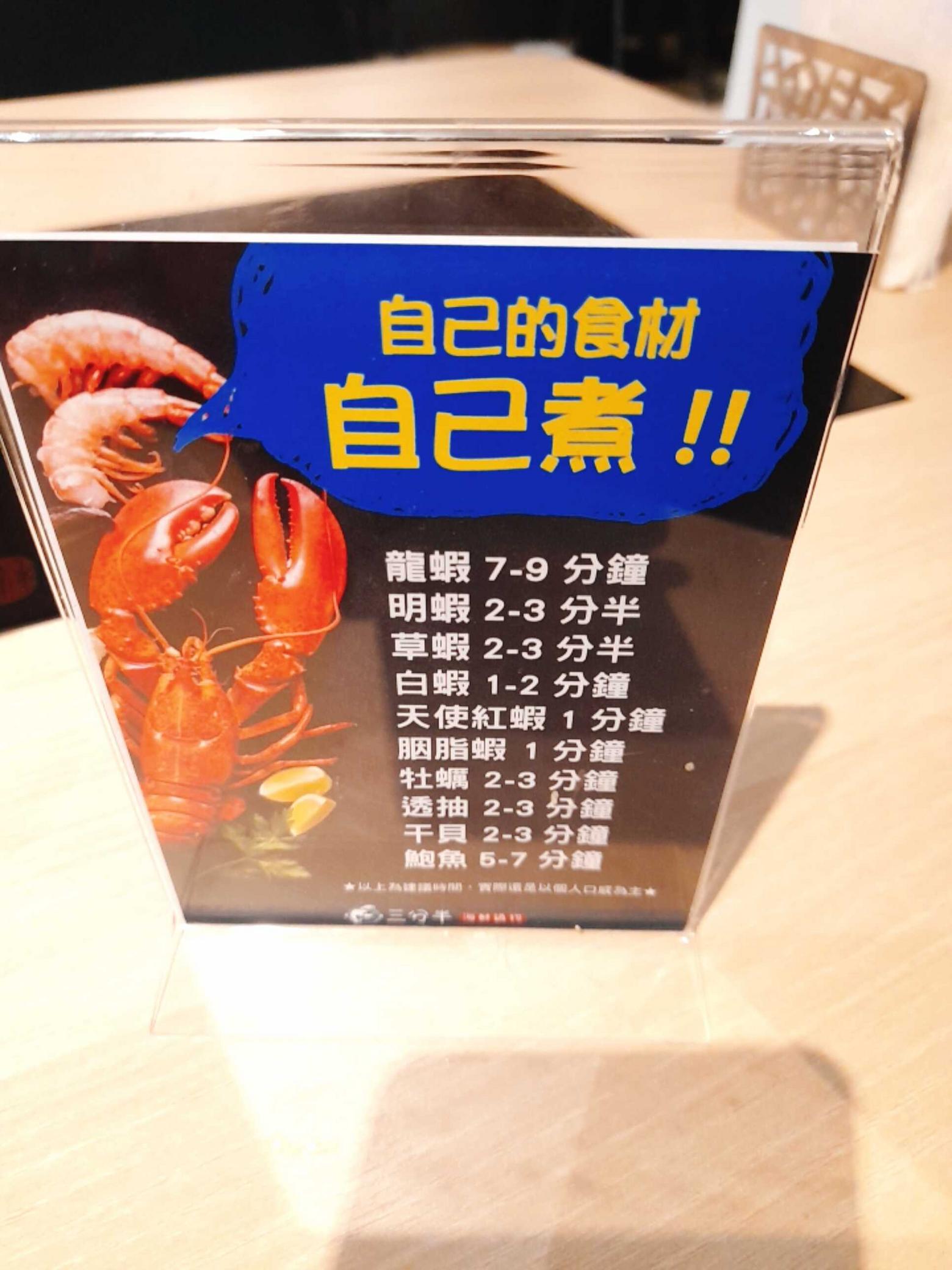 位於信義區 基隆路一段的三分半海鮮鍋物,海鮮都是來自遠洋漁船的新鮮海鮮。 招牌海鮮,海陸鍋物,滿滿的海鮮,有紅蝦 白蝦 蛤蜊 牛奶貝 牡蠣 鮭魚 干貝 透抽 蚵仔肥美又鮮甜。 prime等級牛小排,Q彈很有嚼勁。入口即化 有自助式的醬料,想要什麼醬可以自由挑選,像是黑醋 白醋 蔥花 日式醬油 餐後附贈甜點為了古早味的芋頭冰花生冰,吃起來濃郁綿密,香氣十足。 #三分半海鮮火鍋 #信義區美食 #市政府美食 #信義區火鍋 #台北美食 #台北火鍋 #美食推薦 #海鮮火鍋 #相機食先 #海陸鍋 #prime牛小排 #三分半海鮮鍋物