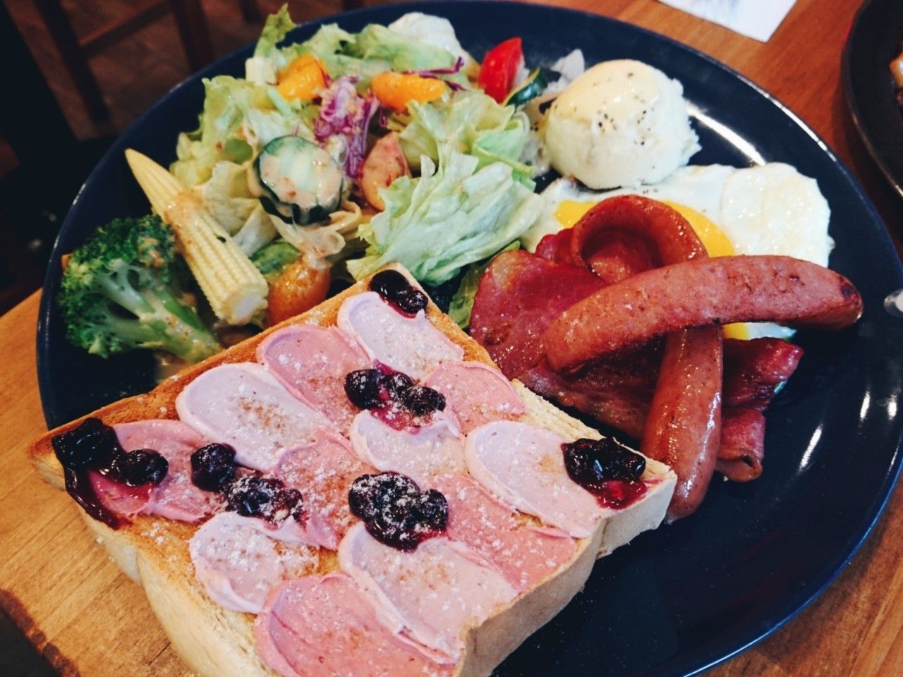 ⭐法式吐司經典早午餐 $200 -內容物很豐富 有生菜沙拉/法式吐司/德式香腸/培根/炒蛋/薯泥/炒菇/水果/季節蔬菜