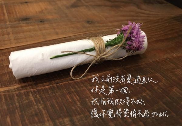 用一個站立式的紙盒裝著的吐司上桌囉~