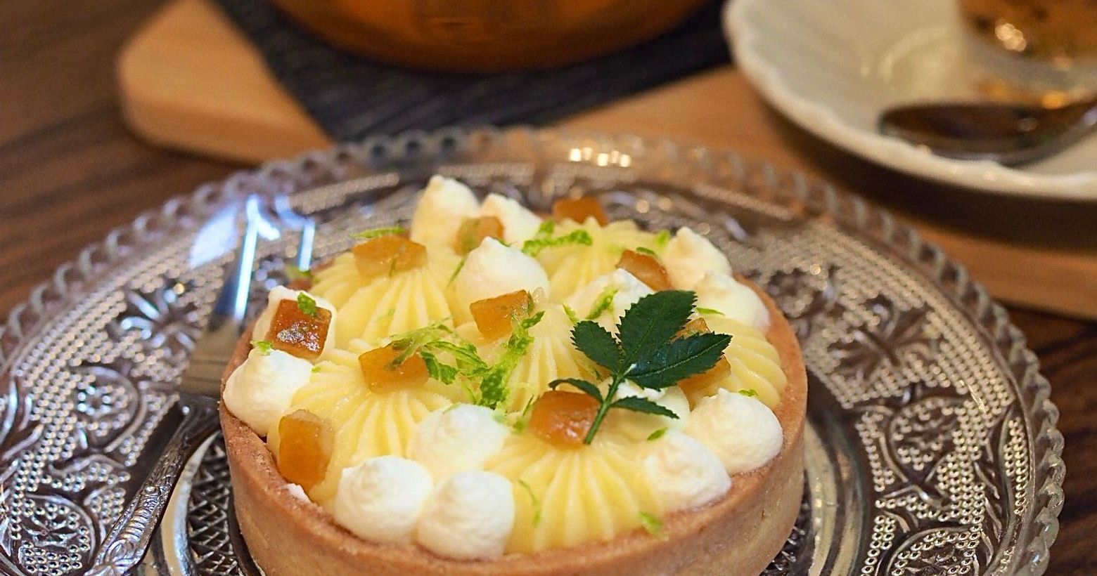 手工塔皮裡頭填滿了檸檬醬搭配著柚汁香緹奶油,糖漬柚皮以及檸檬削的點綴,酸甜的口感讓人回味無窮。