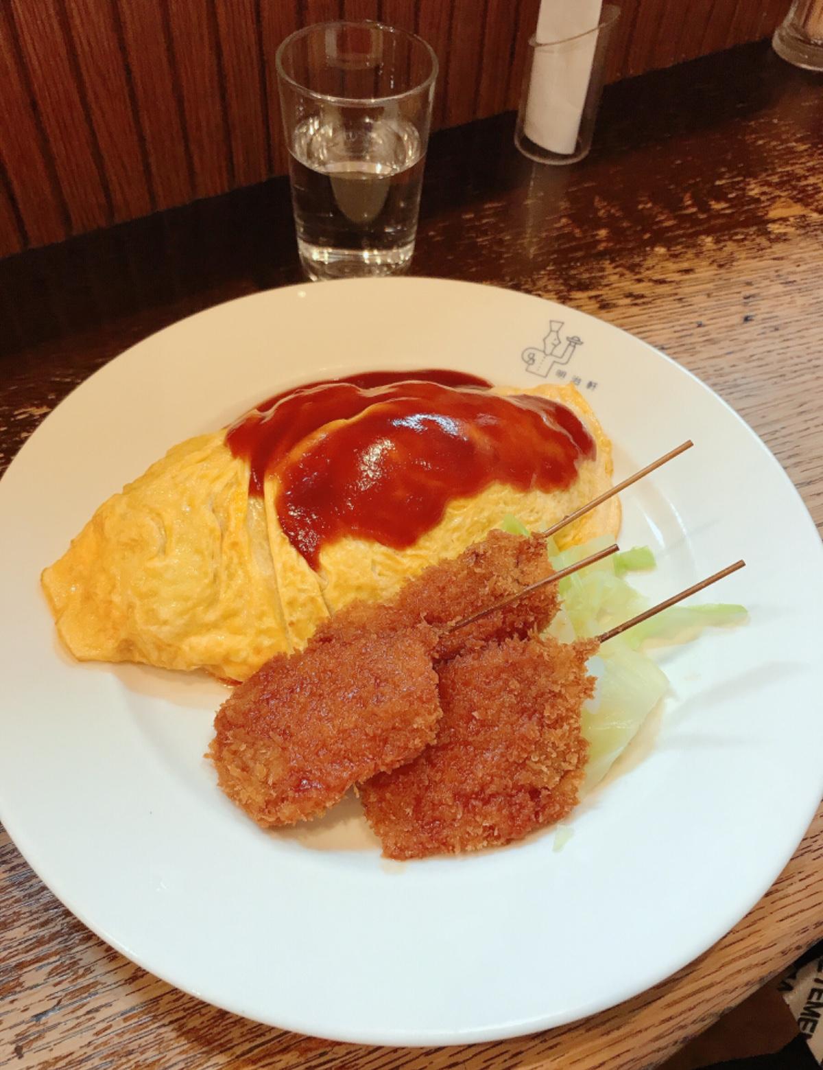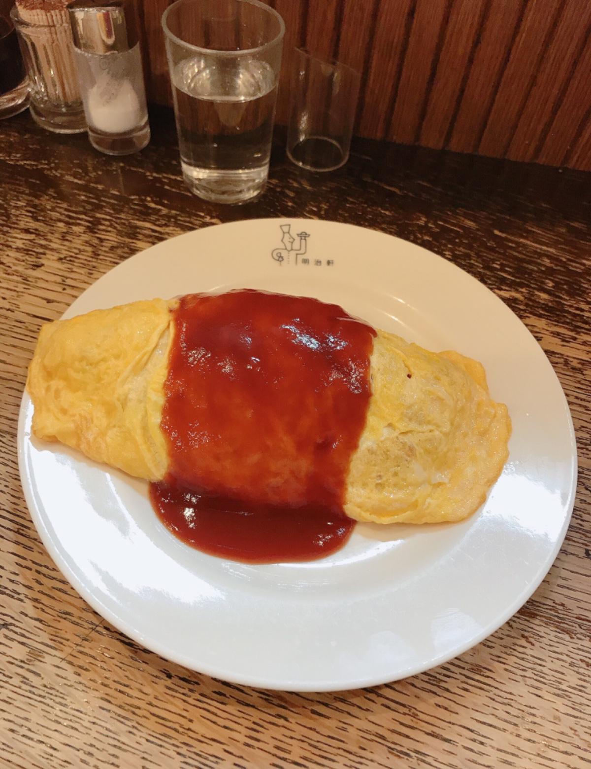 晚上去吃明治軒,這家本來不在規劃內,但逛的太餓了,就先找一家來吃,一進店裡還蠻多人的,也很親切帶位,蛋包飯可以選要小份還大份,這個是小份的,但我覺得算蠻大的