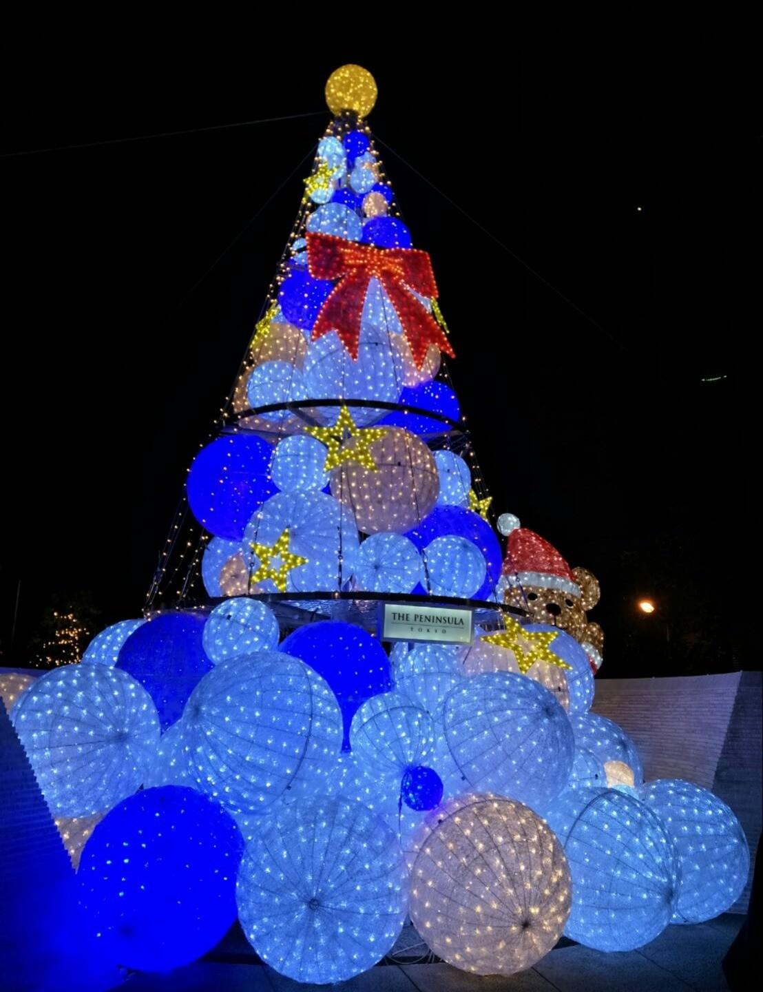 一走進這區就可以看到街上的行道樹掛滿了燈泡,整條街閃爍著藍色的光芒。並且也會隨著時間變換不同的顏色。整個區域的主色調會按照日期分成五個階段,目前到12/8都是第一個階段「Opening Blue」