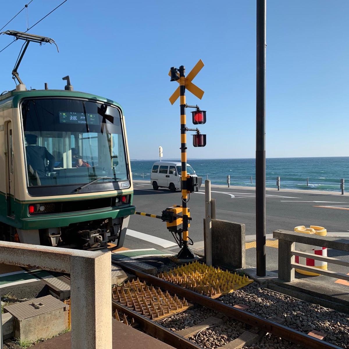 動漫灌籃高手經典場景🏀 閃閃發光的海面與電車✨🌊 著名拍照路口很多車輛要轉彎進入 其實蠻危險的⚠️⚠️⚠️ 一聽到電車聲大家一窩蜂衝上前卡位 要拍到好照片很有難度 果斷放棄直接在旁邊拍拍照 效果也是很不錯的🤣💙