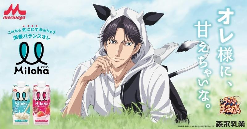 「新網球王子」的官方推特於今日發表了一篇人氣角色-跡部景吾成為森永乳業旗下商品廣告代言人的推文。