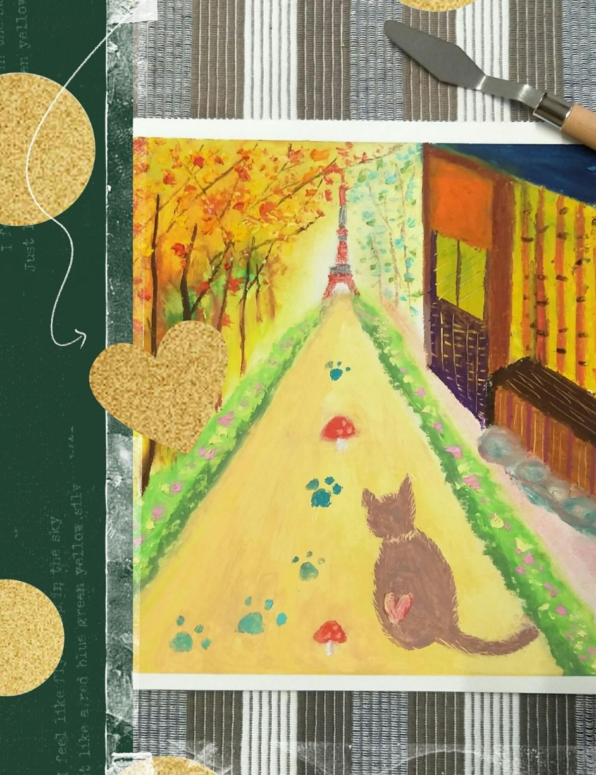 插畫(油畫棒)/日本回憶x東京鐵塔可愛繪圖