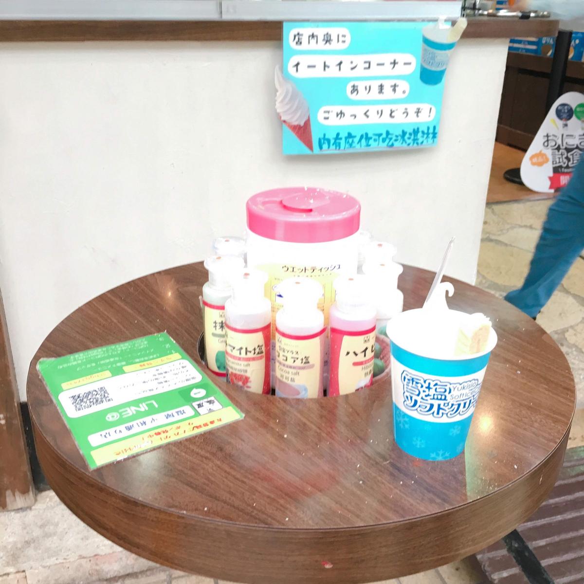 在沖繩你會看到很多家Blue Seal,但我覺得最有特色的就是這一家「塩屋」,他們家有賣很多塩相關的產品,最有特色的就是他們的霜淇淋,他是使用宮古島雪鹽製作的霜淇淋,所以吃起來會有一點鹹鹹的,在店門口也會有很多不同口味的調味鹽讓你可以撒在霜淇淋上吃,是一個很特殊的回憶喔!