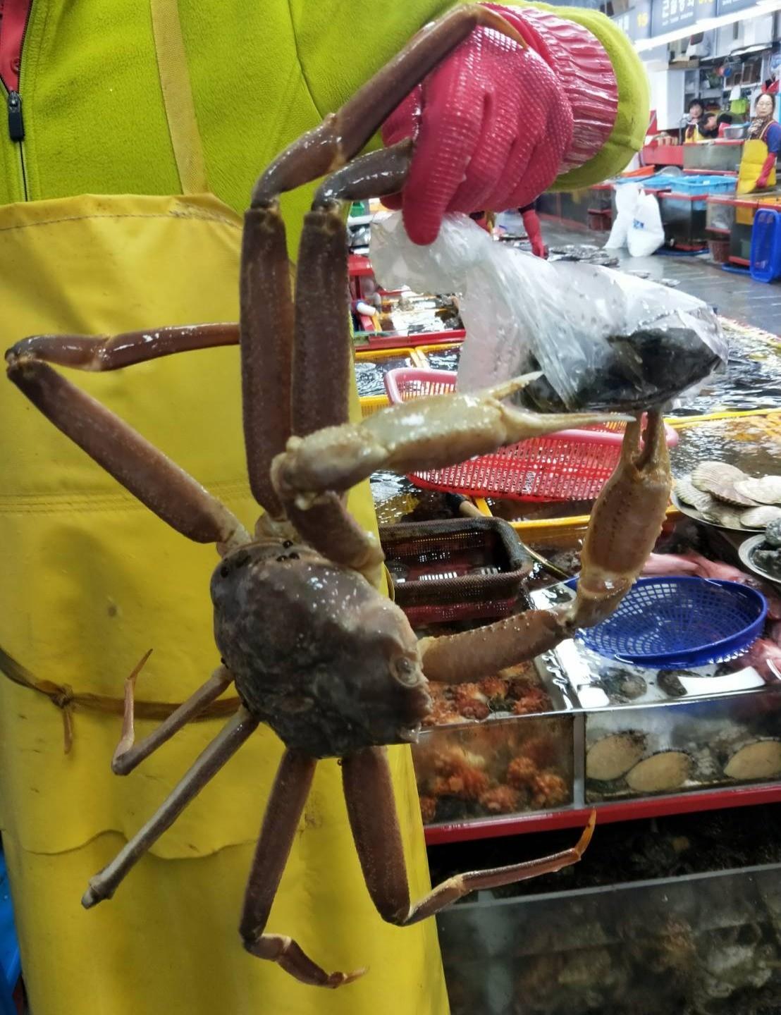 |釜山.札嘎其市場|超鮮甜美味帝王蟹+便宜鮑魚❤