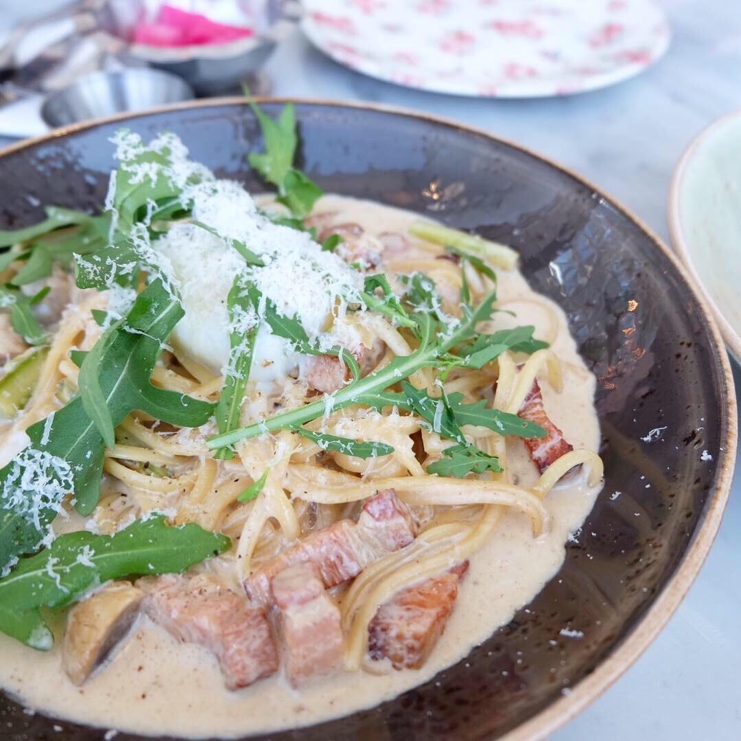 這邊奶油香氣很足又不會太奶太油,培根和蘆筍搭配吃起來也算清爽,麵本身屬於較粗有咬勁的麵條,本身是奶油義大利麵愛好者,這道絕對是我心目中的前幾名
