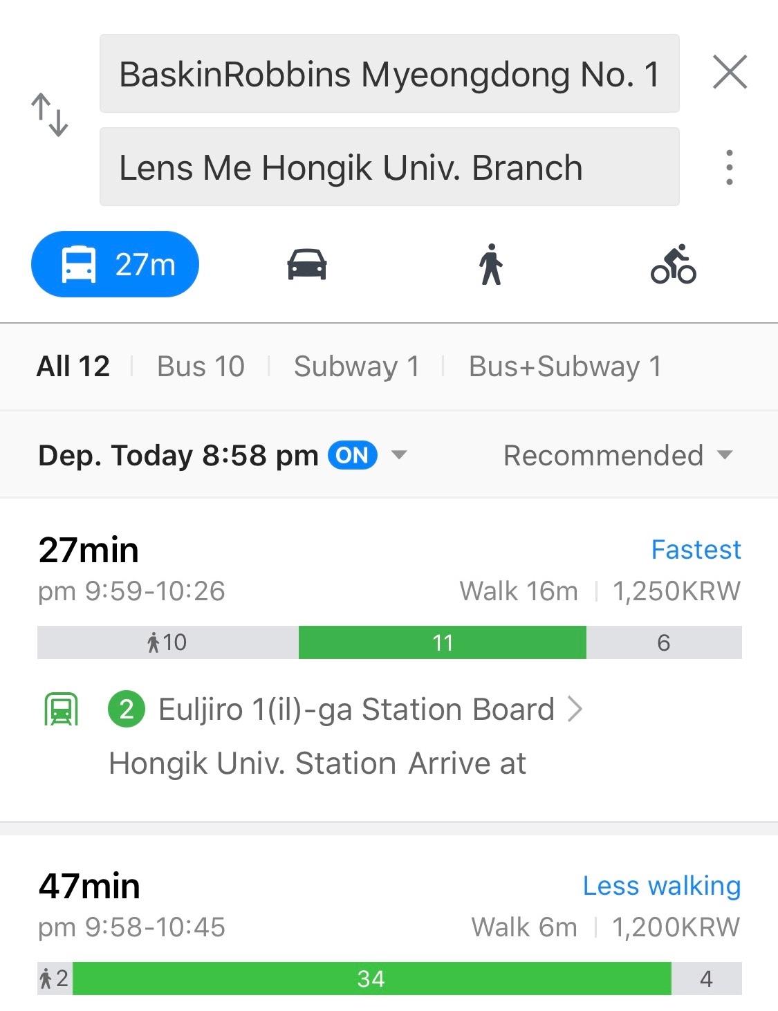 ⭕️跟google map一樣 可以查詢怎麼搭公車或地鐵 很方便‼️ 右下角會顯示車費、最快路徑、走路最少路徑等等🤣