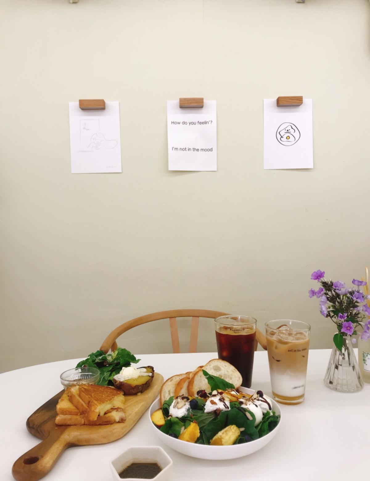 首爾 合井站小餐館🌱 not in the mood 1 / 6很可愛又有異國風情的小餐館有早午餐餐點也有甜點咖啡!用料都很大方而且很新鮮起司沙拉10900韓幣起司三明治8900,旁邊的烤蕃薯超好吃🌝外面的景拍起來也超級美喔 happymini 韓國研究所就讀中👩🎓各式韓國生活
