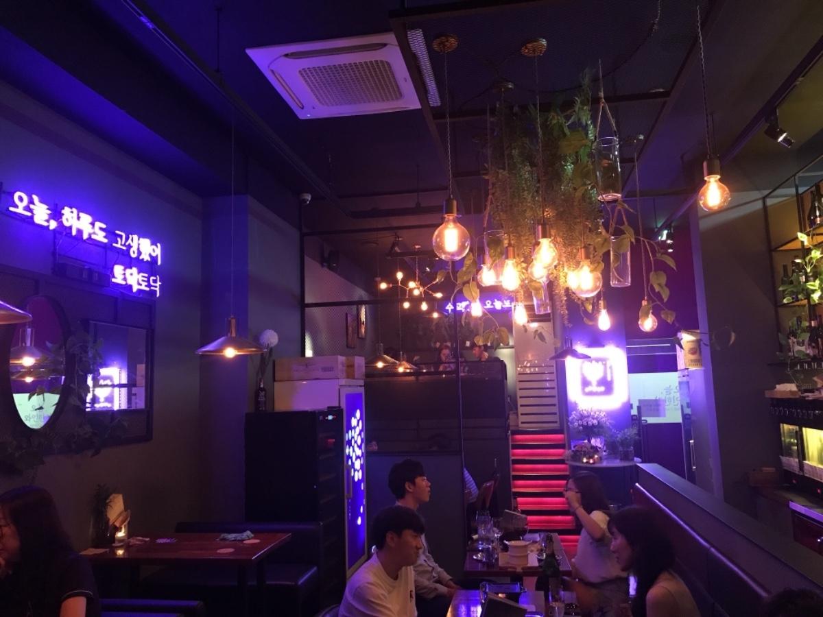 看版上介紹的餐酒吧,有很多分店,堂山站的比弘大安靜舒服😌