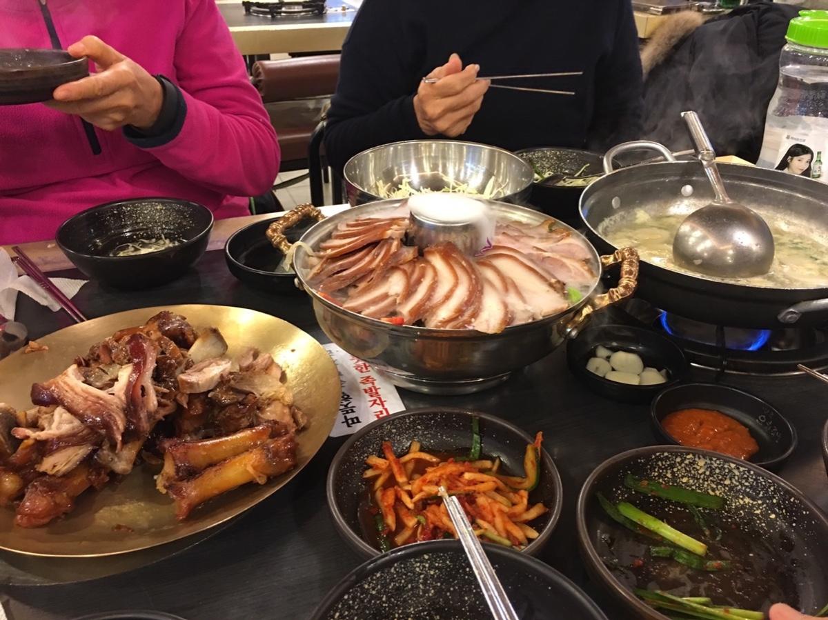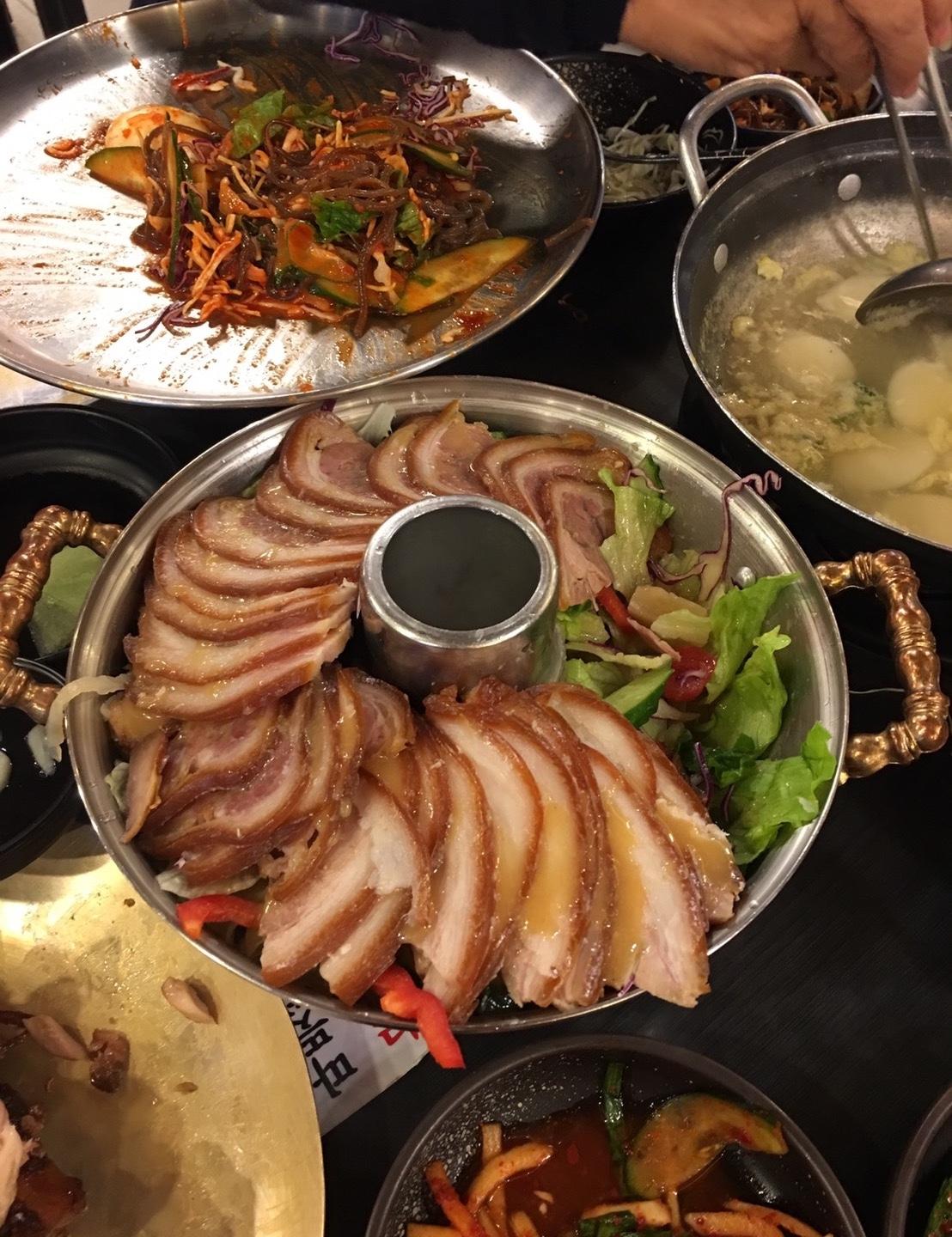 市廳站美食~五香豬腳、豬腳冷盤及蕎麥冷麵都超好吃!隨餐附的年糕湯頭感覺有用豬骨熬,看似清澈但湯頭很濃很夠味喔!