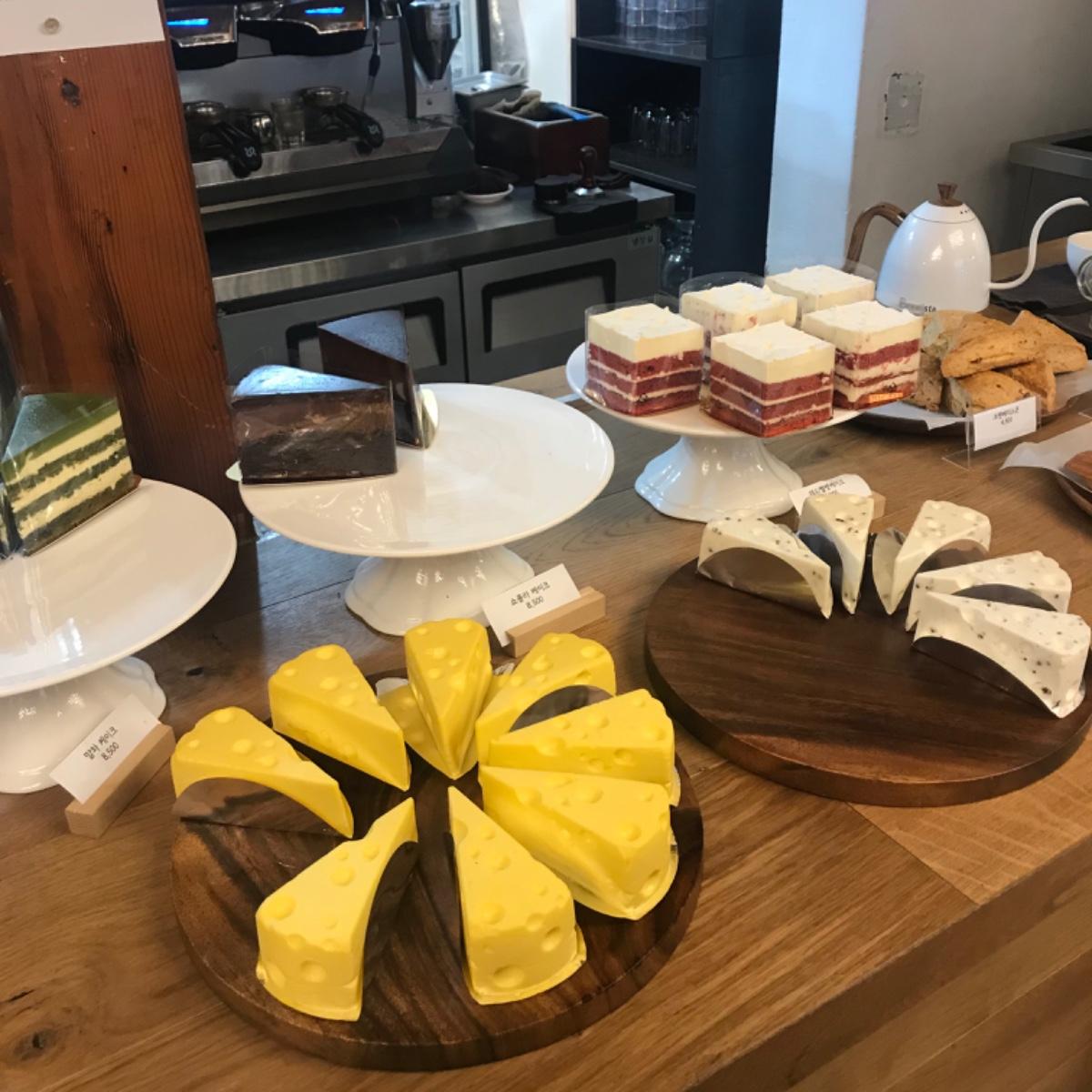 照片的起司蛋糕跟Tom&Jerry裡面的起司蛋糕長得一模一樣!而且不是只有外表的那種喔!超級好吃味道很濃可是吃完也不會很膩!另外白色的也是起司蛋糕!不過因為我先吃黃色的味道很濃,所以吃白色的感覺沒有味道🤣