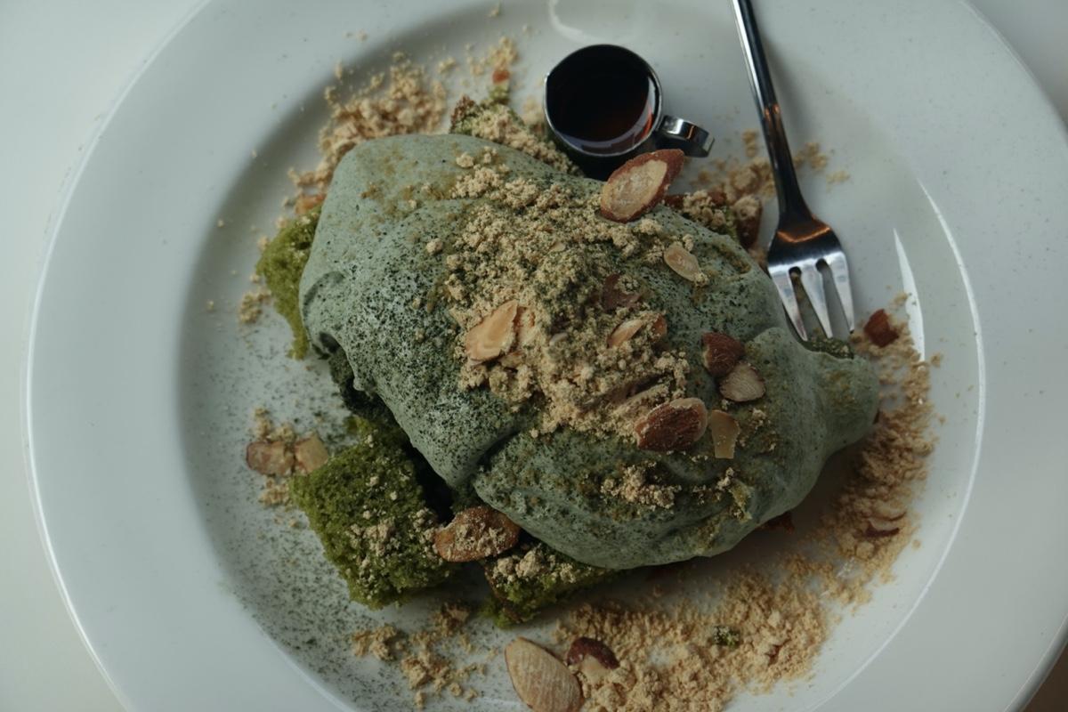 糕點還有飲料的綠,一開始我以為是抹茶口味,後來才知道是艾草染出來的漂亮色調,蛋糕吃起來帶有茶味,或許成分還是有添加一些茶吧?