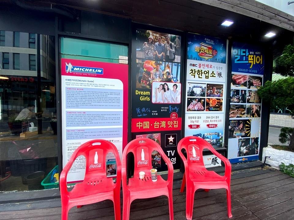 餐廳外部貼了許多電視節目來採訪的報導