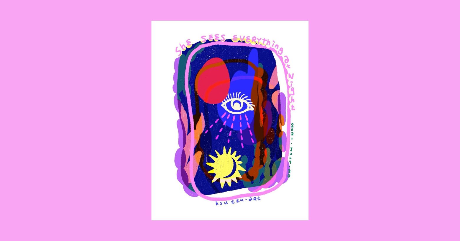 每日一畫:She Sees Everything at Night 1 / 1夜晚總是賦予她全然的自由世界睡著了 於是她的天馬行空不再受拘束黑暗中甦醒的是最純粹的 心的顏色她們在夜裡映照著日月 與遙遠的星空親密對話 #藝術創作 #圖文創作 #創作 #文字 #日常 #心情 艾米・飛心靈產物・靈魂風景ig: amychenfly.art