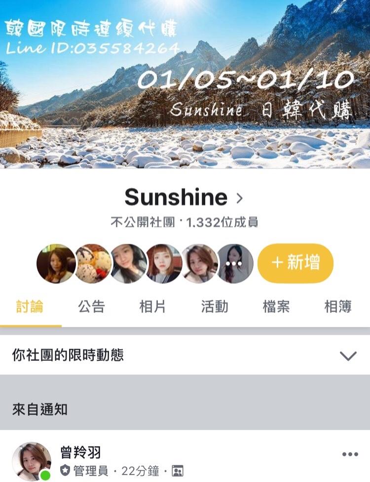 基本上打 sunshine韓國代購 就會出現一樣商品點進去就可以去賣場開她的商品囉,推薦這家代購👍