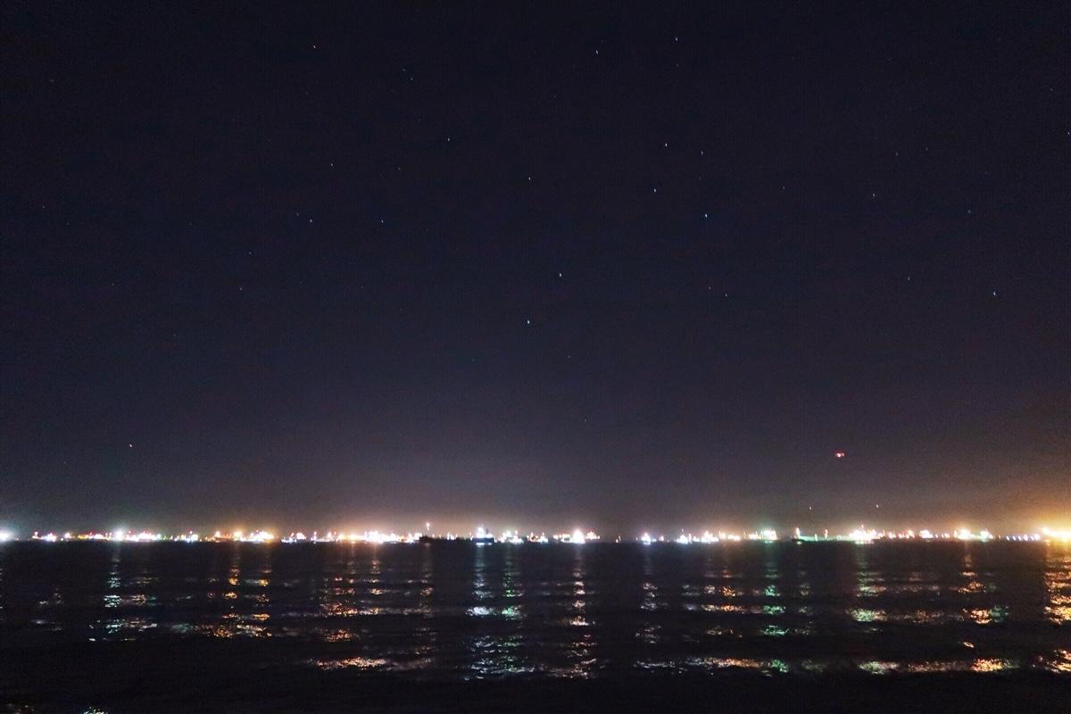 海平密上是一艘艘未熄燈的魚船形成特別的景象