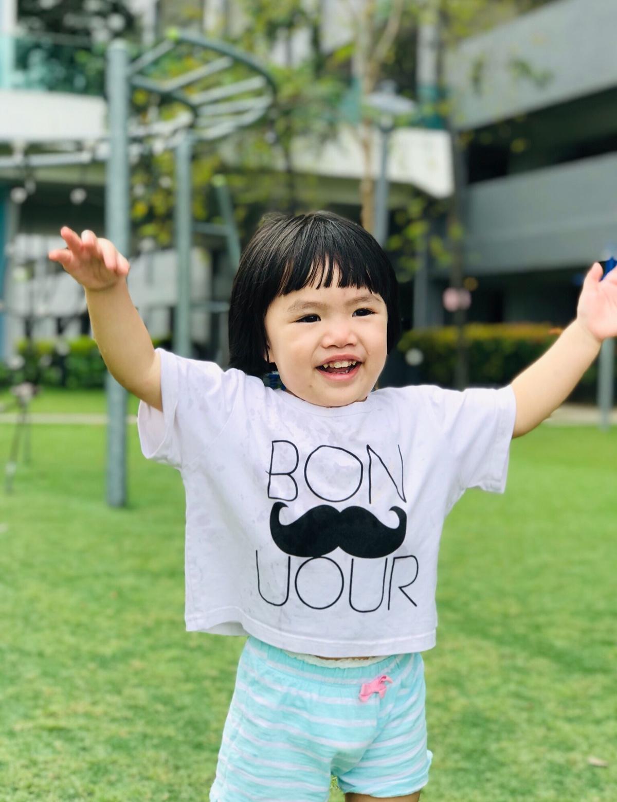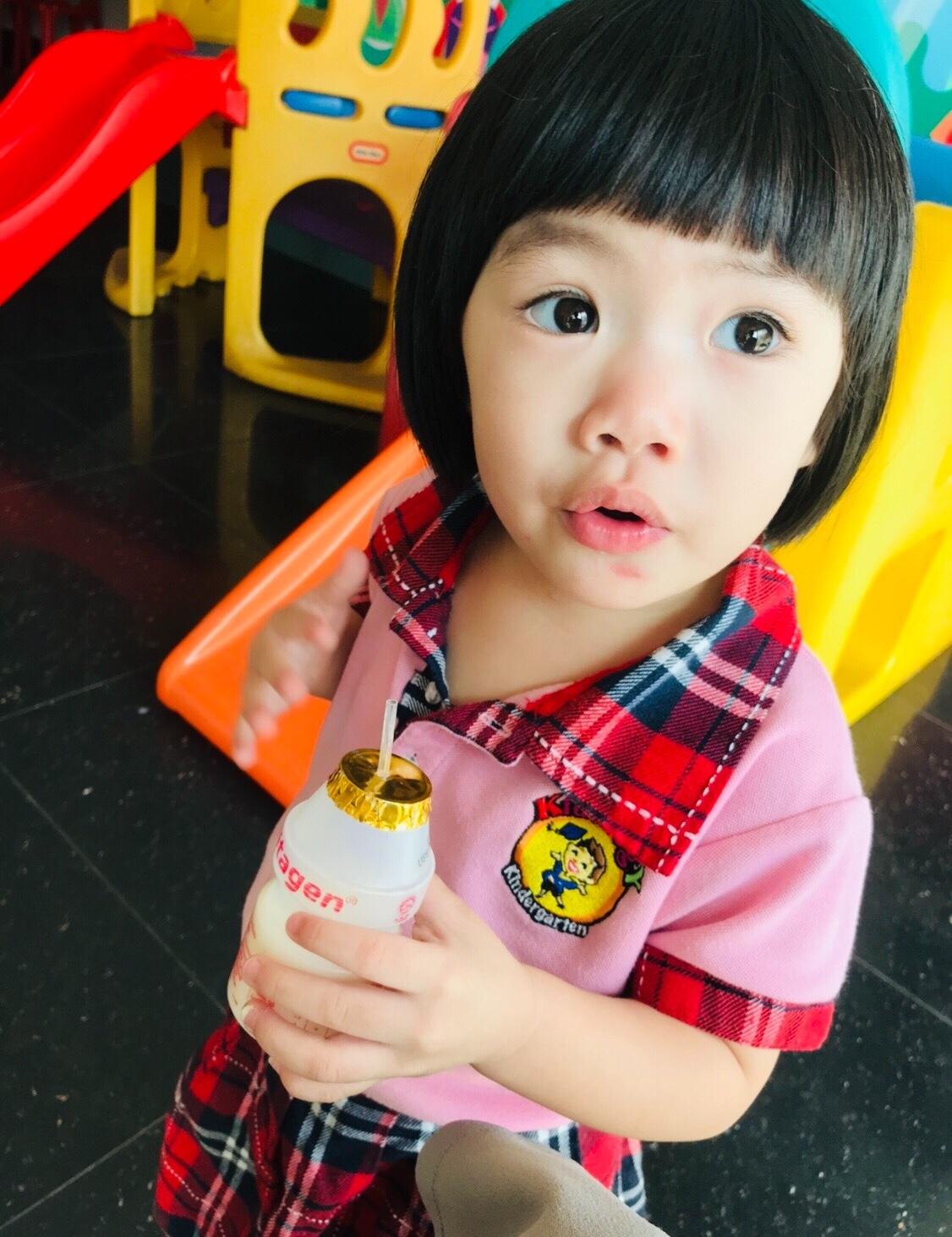 圓圓的臉蛋,粗粗的眉毛,濃濃的睫毛,白白的皮膚,是我家小妞的招牌 😂