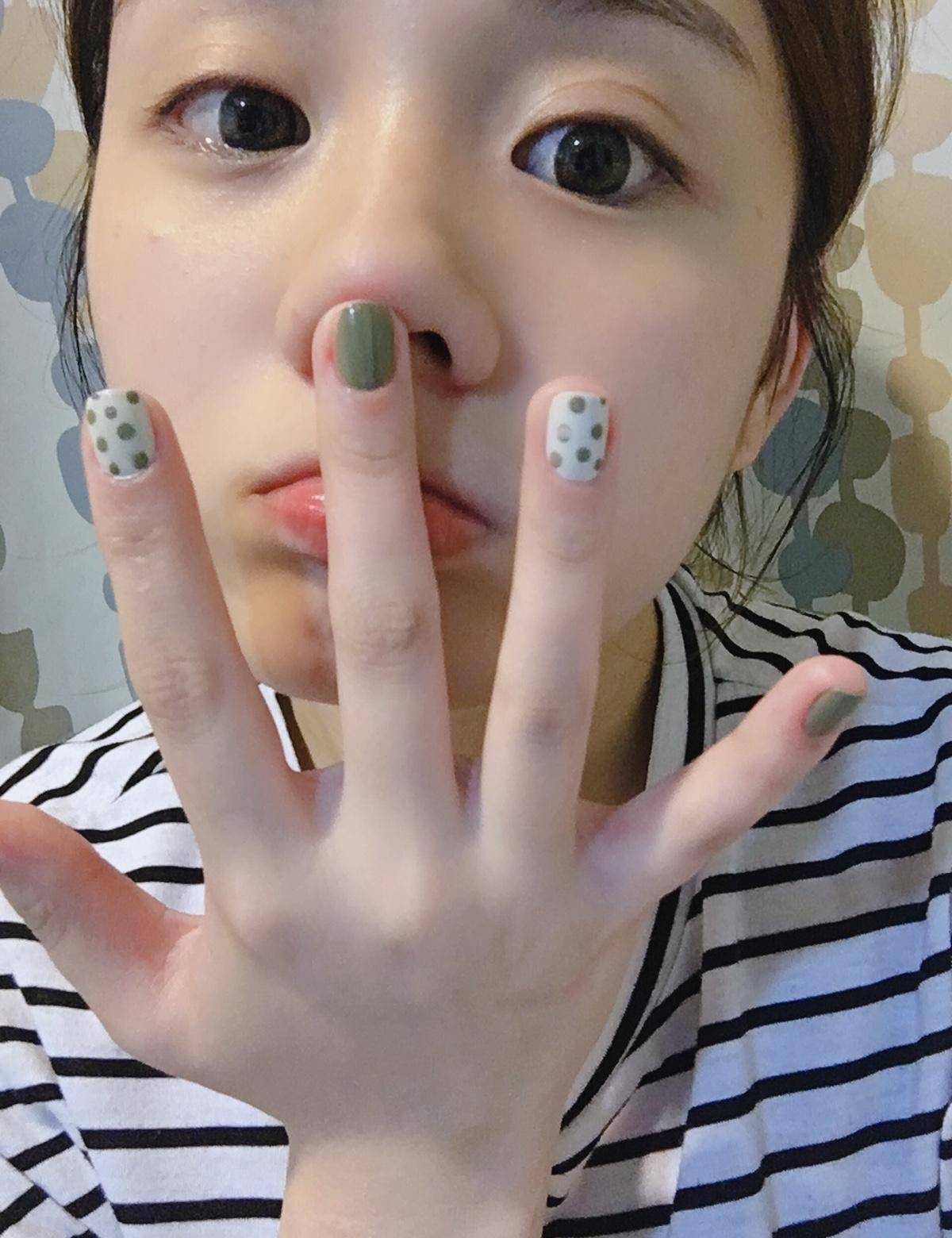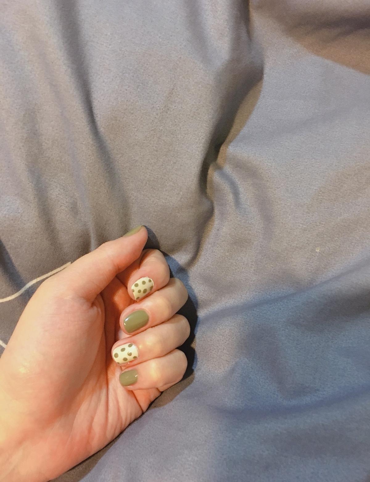 酪梨色實在太美了😍第一次自己做指甲🤪雖然不是完美但對手殘的我來說也算不錯了吧🤭