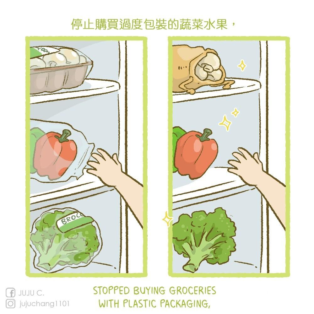 一個改變達成後就會變成下一個改變的動力。我開始檢視哪些生活用品的發明是便利多於衛生,可以考慮淘汰。隨即我把卸妝油和棉換成了純天然椰子油和可重複使用的棉片,一包包衛生棉換成了一杯走天下的月經杯,瓶裝洗髮精換成了洗髮皂,也盡量挑選零包裝的蔬菜水果…