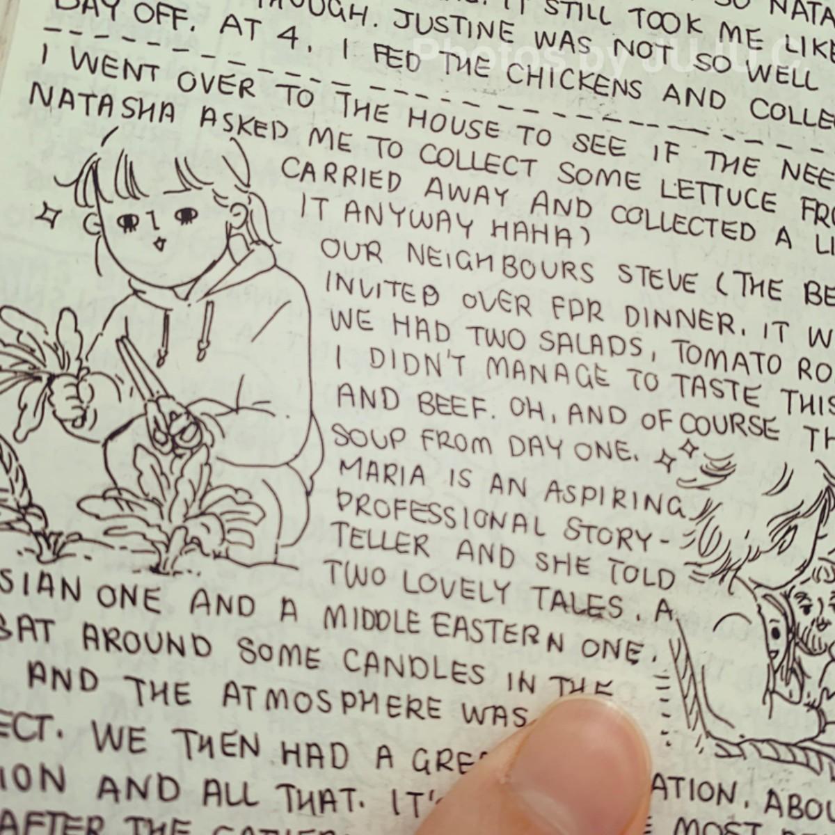 參觀完農場後,我被分配到的是最入門的雞舍。主要的事項是早上8點要準備好飼料並開放籠子讓雞群們自由活動。剛出生的小雞除了一般飼料以外還要給他們搗碎的水煮蛋補充營養。隨後要用小鏟子清掃棚子上的糞便。下午5點除了第二次的餵食,則是要到農場上各個適合下蛋的地點撿雞蛋。我通常會趁這個機會順便到下蛋地點之一的山羊棚裡和山羊聊聊天。 最後,也是最重要的就是待天黑後將雞群們趕回雞舍裡。若是忘了關門,會有狐狸或其他捕食動物闖進來的危險性。不過有兩隻同住在雞舍裡的鴨子非常不配合,常常要半騙半拐才能把他們帶回雞舍過夜。