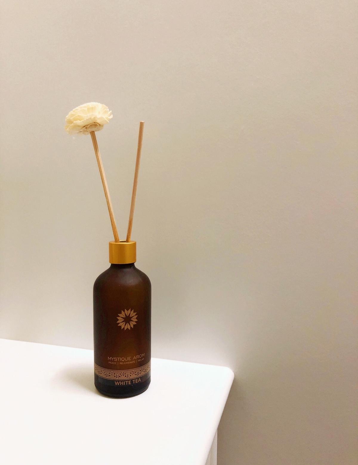 泰國香氛-MYSTIQUE AROM 1 / 1泰國的香氛品牌選擇多樣這次選擇MYSTIQUE AROM-white tea擴香瓶身設計有質感插上擴香竹放在桌角就像一裝飾品淡淡的清香讓人很放鬆愉悅 Miu kuoig:miu_kuo