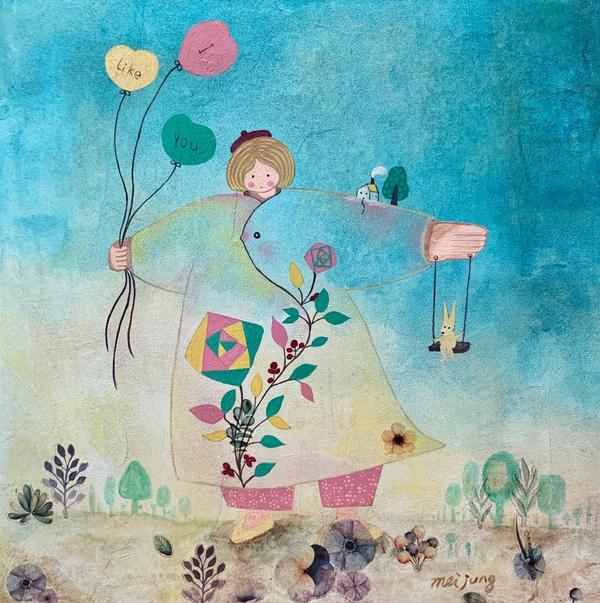 小小幫手很熱心的幫忙撿起掉落一地的手環,然後溫蒂就成了戴滿手環的貴婦了😆