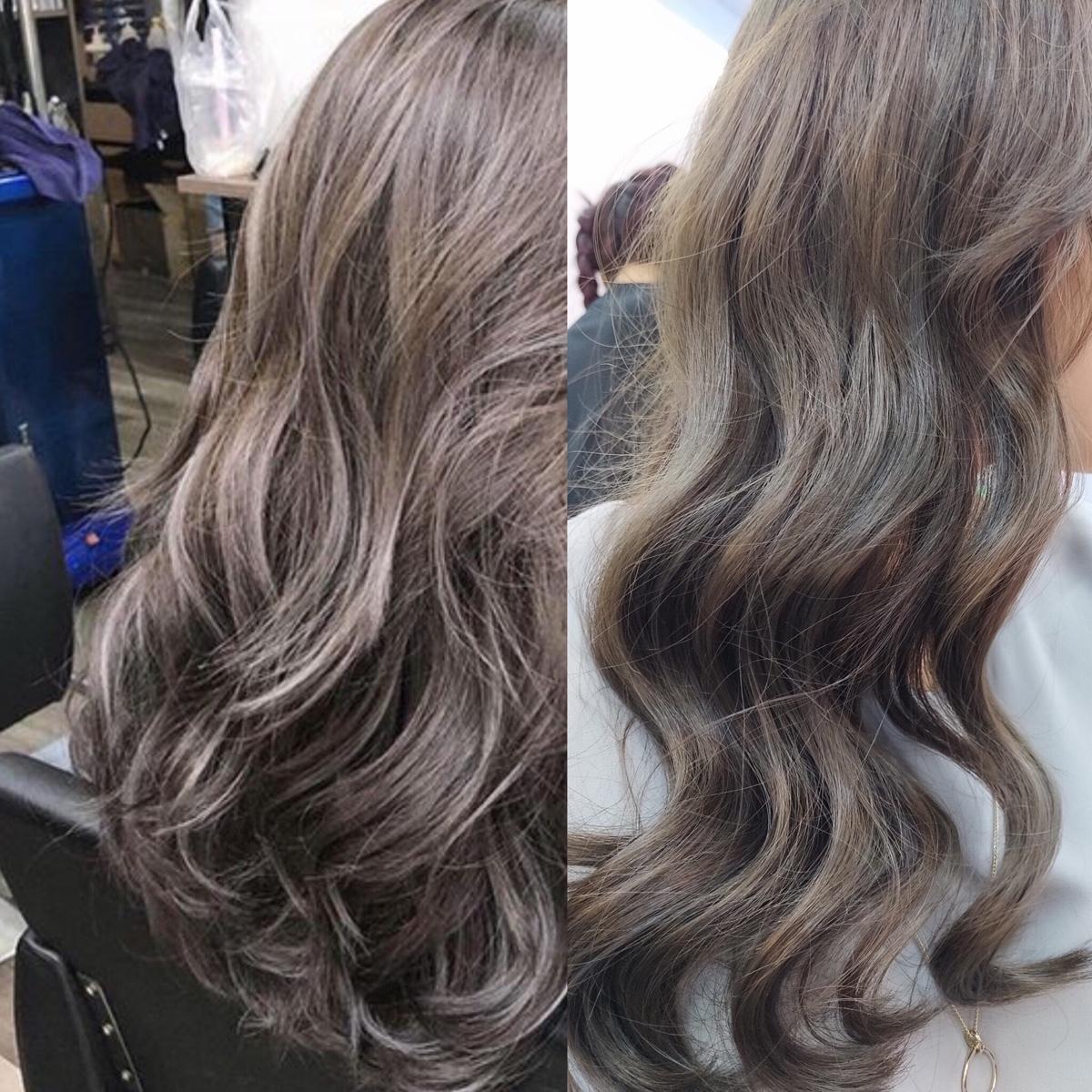 金邊剪劉海成功 然後顏色是右二沒錯 但好像有點不一樣哈哈哈哈 第一次嘗試灰色調 我覺得還行啦 皮膚白一階🥰🥰 重點這樣才美金50元🥳🥳🥳🥳