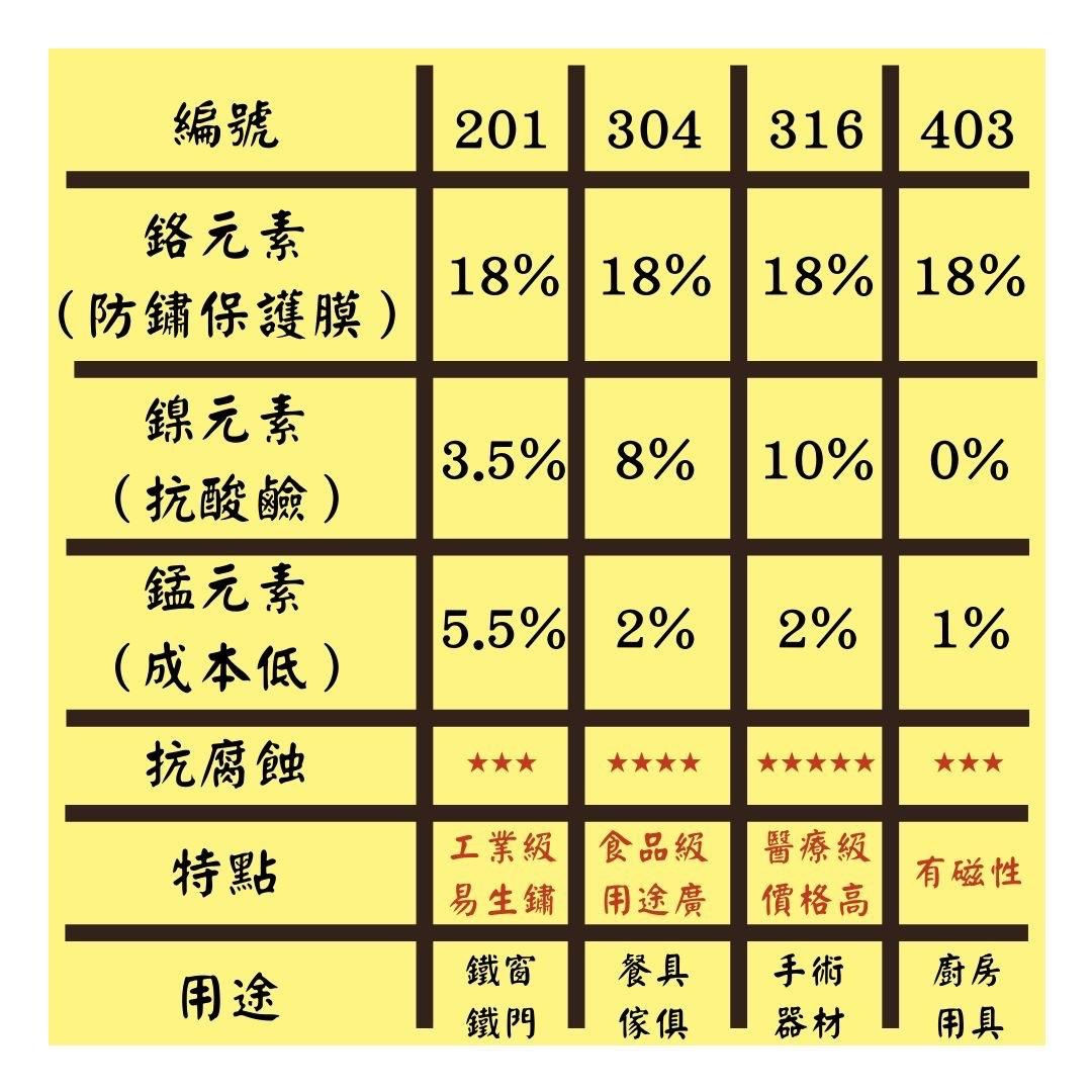 201、304、316、430不鏽鋼的差別在哪?