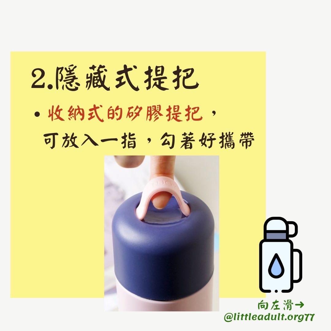 收納式的矽膠提把,可放入一指,勾著好攜帶