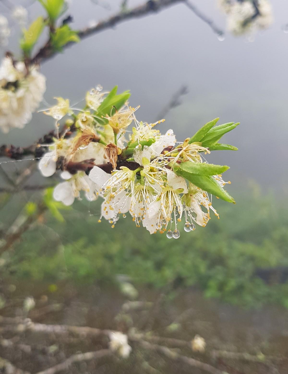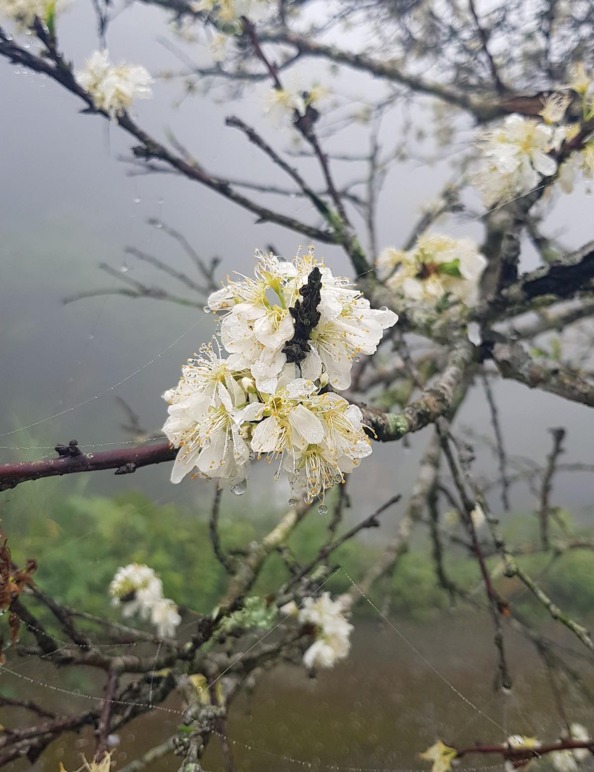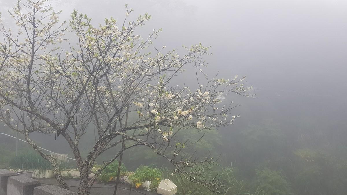 隨著海拔的升高,溫度也慢慢降溫,路上看見這棵李樹,不由得被她吸引。潔白的花上還有著晶瑩的小水珠,在這瀰漫著濃霧的山中,更顯她的清麗脫俗。雖然沒看到盛開的艷麗櫻花,但意外卻看到了李樹,也算是一種收穫囉~
