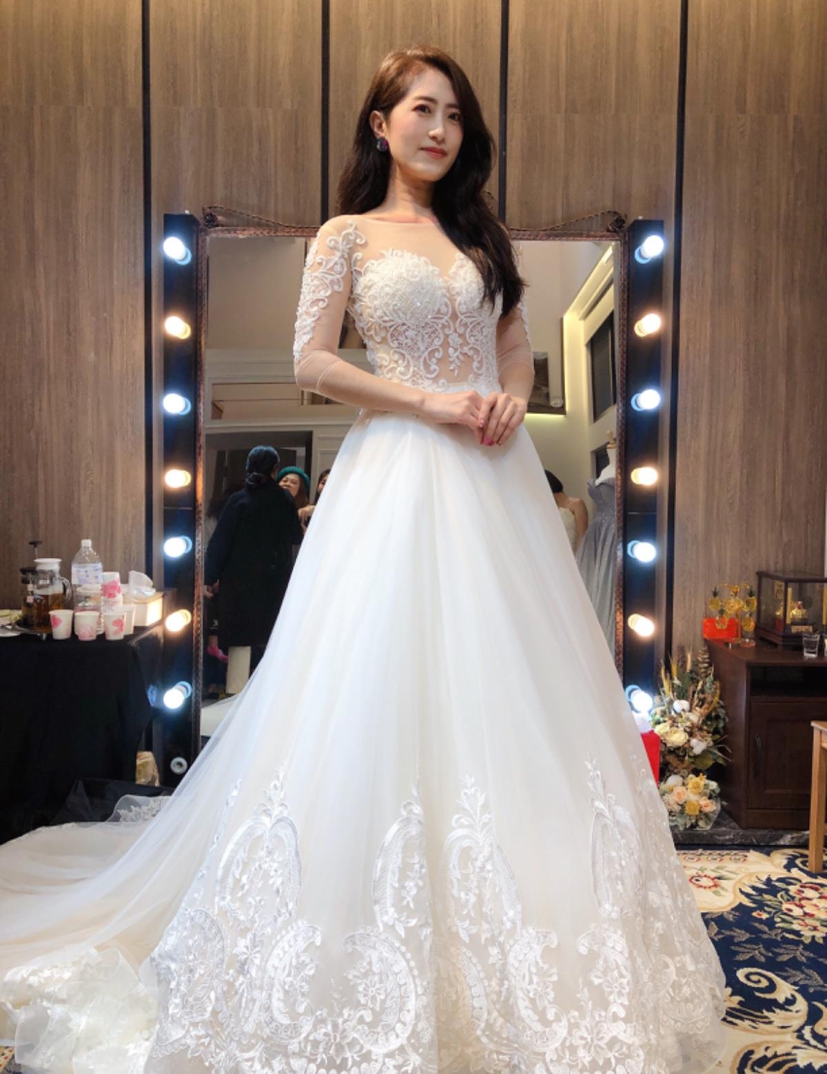 忍不住試穿起美美的婚紗