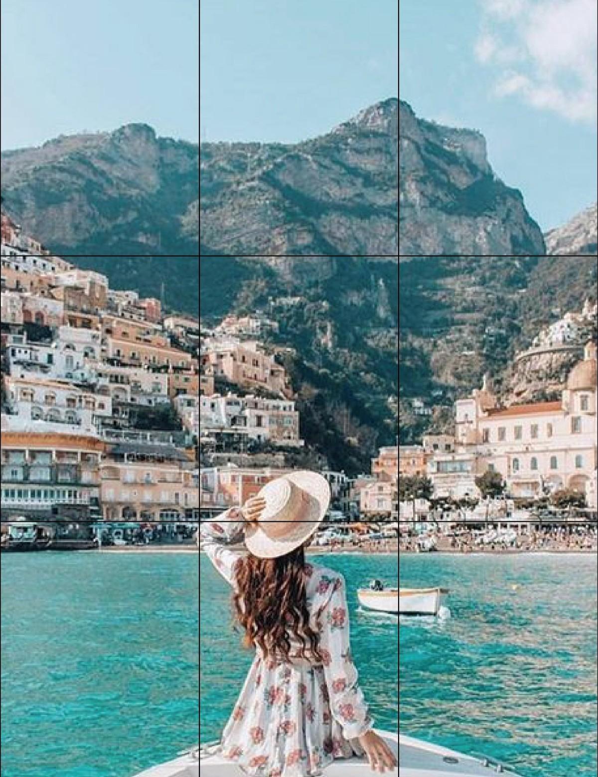 想記錄夢幻的網美情境,結果常常被男友拍成經典五五大頭矮短肥嗎?一樣開啟九宮格,將人放在中下兩格中,這樣整張照片的比例就不會太差囉!