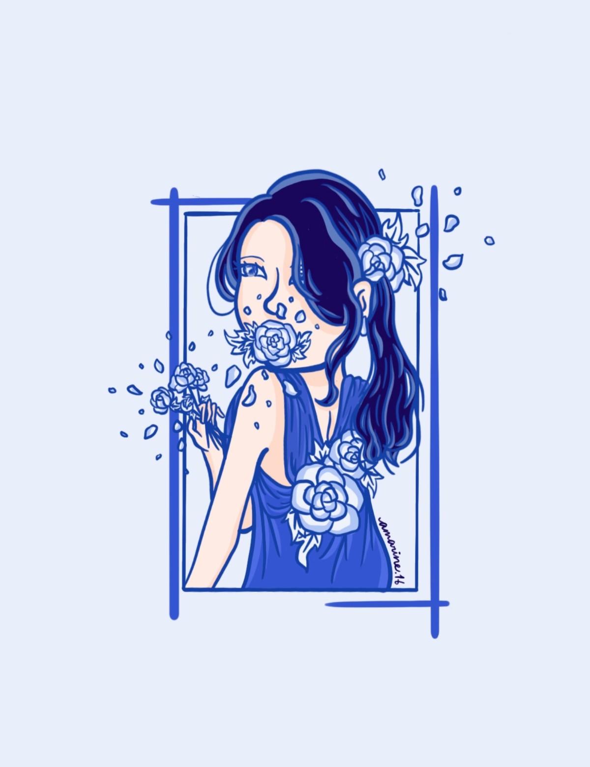#插畫 #塗鴉 #綻放 #藍色 #生日快樂 #女孩
