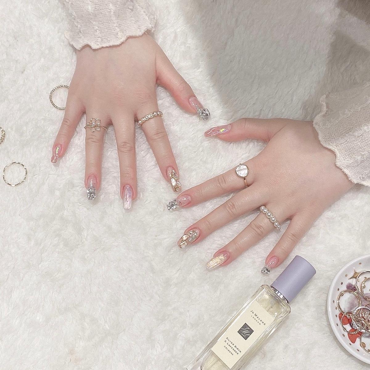 顯白氣質美甲💅🏻 1 / 4這次自己做了一款非常浮誇又很長的指甲😁❤️本來做了一個鏡面素色,才做兩天就又被我換掉,每次不做那麼浮誇,就會看不習慣😂😂😂漸變銀色亮粉膠搭上銀色鑽好閃好美好喜歡💕☺️ Belle茲茲愛亂買的大學生💕😝❤️