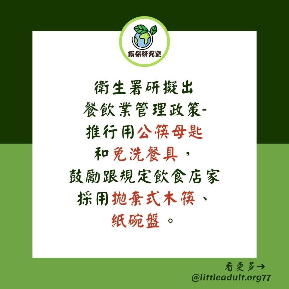 鼓勵跟規定飲食店家採用拋棄式木筷、紙碗盤。