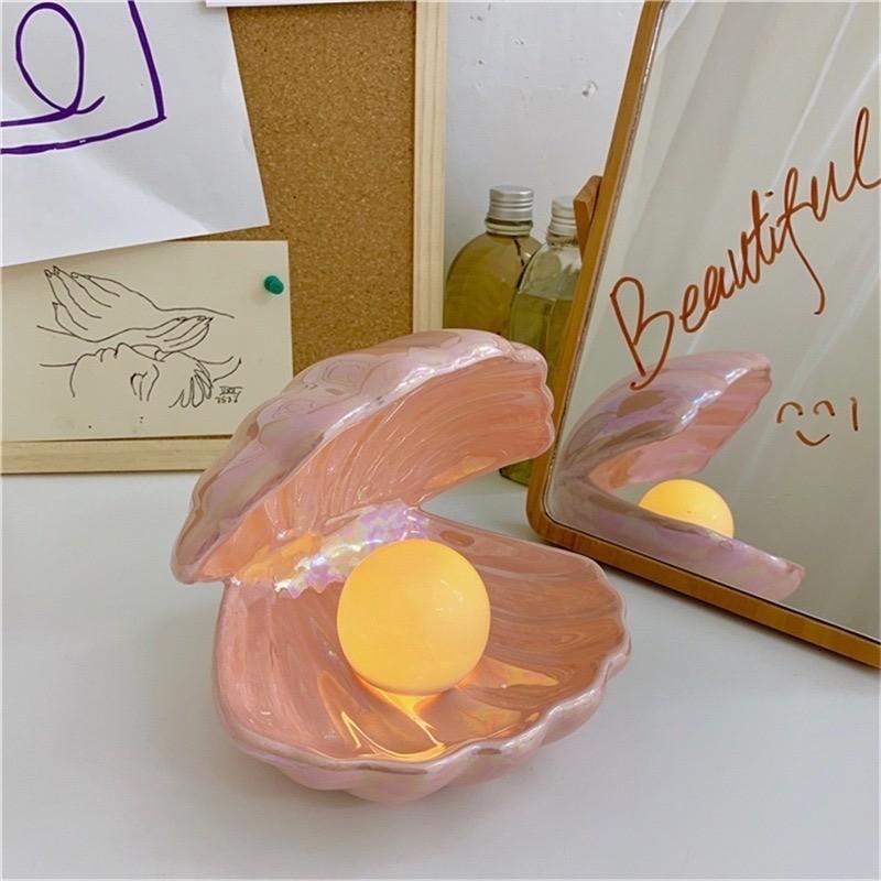 ✔︎ 推薦:少女浪漫夢幻陶瓷貝殼燈珍珠人魚小夜燈(圖5)