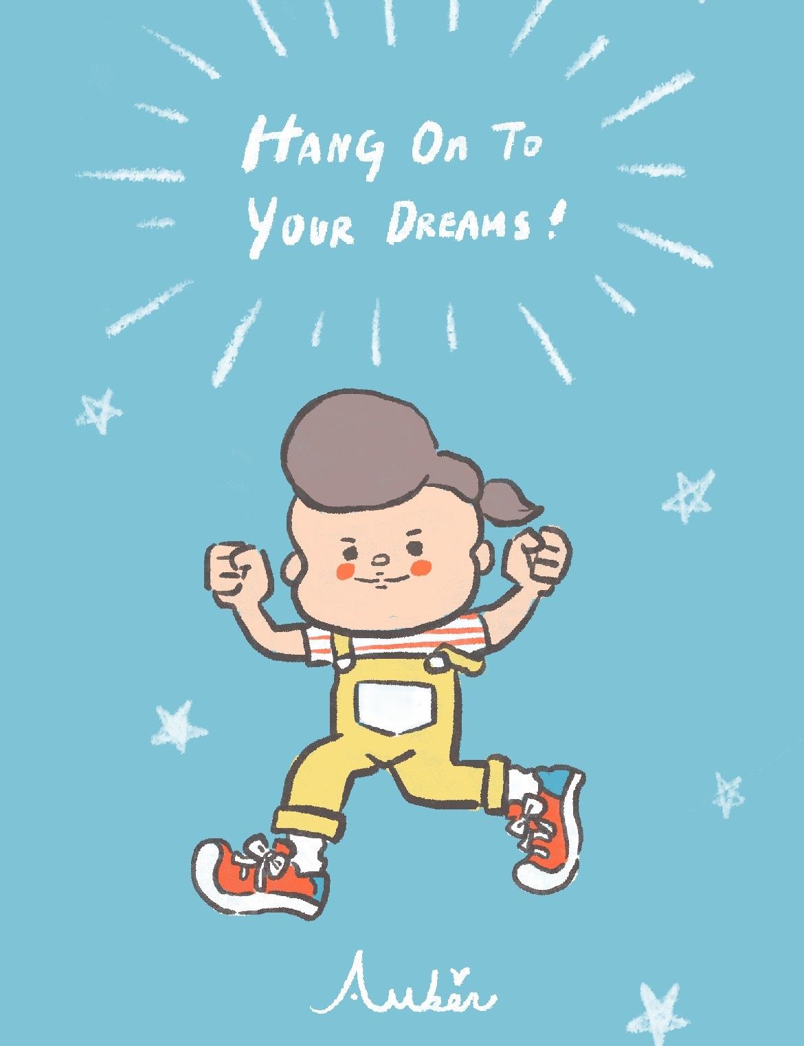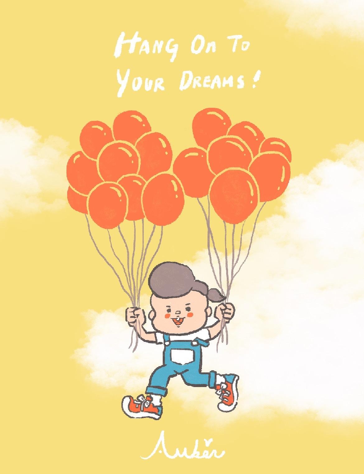 Hang on to your dreams 抓緊妳的夢想,別輕易放手,讓夢想引領妳飛到更高更遠的地方吧!黃色版本給妳滿滿的陽光~