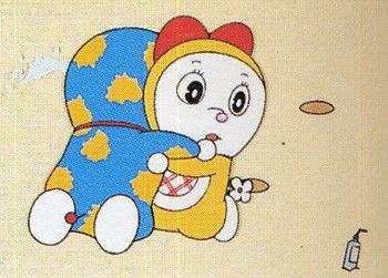 (圖3)1985 到 1995:哆啦A夢的耳朵被老鼠咬掉後,被女友嘲笑到難過大哭,淚水把身上的黃漆給洗掉了,所以才變成原本的藍色模樣。