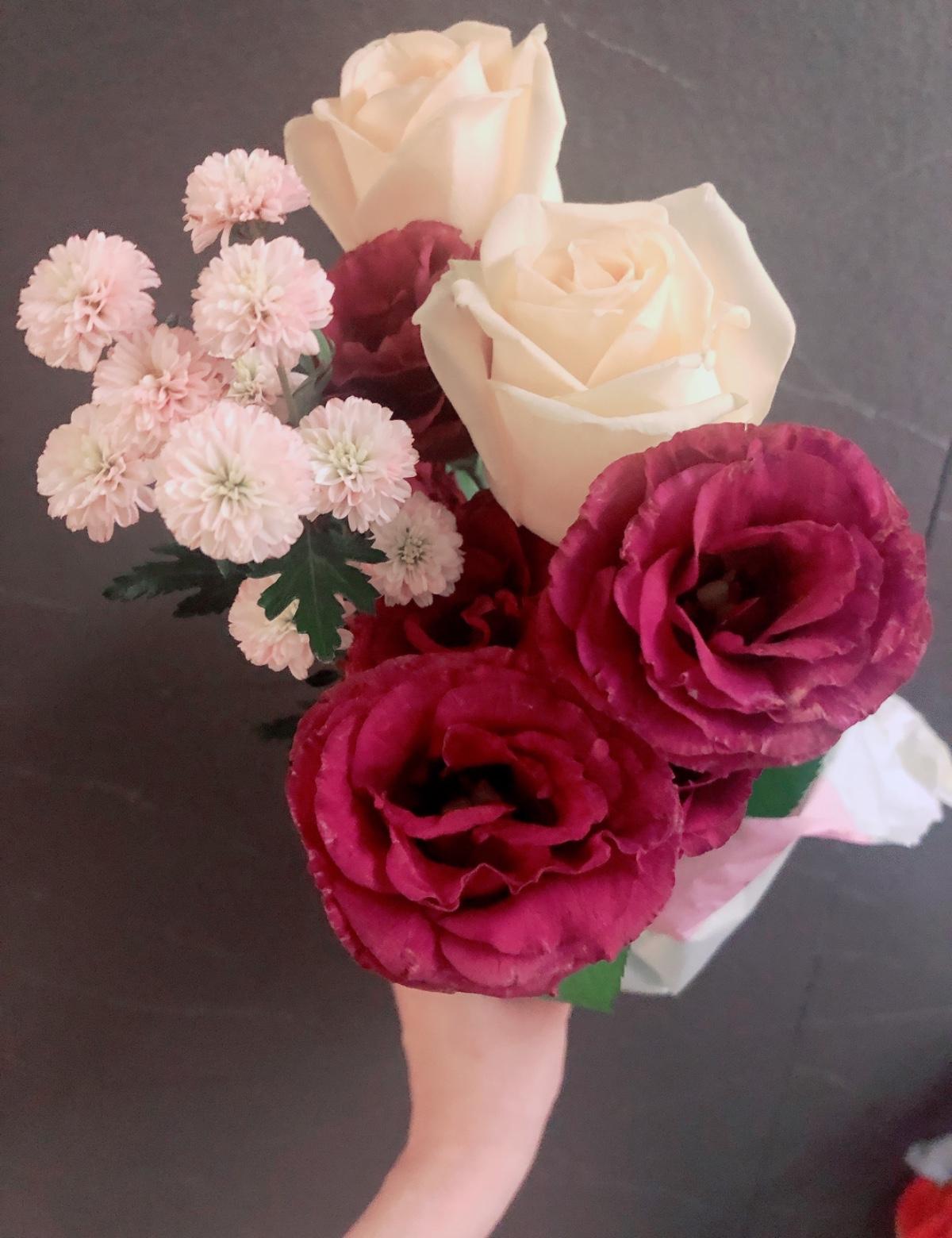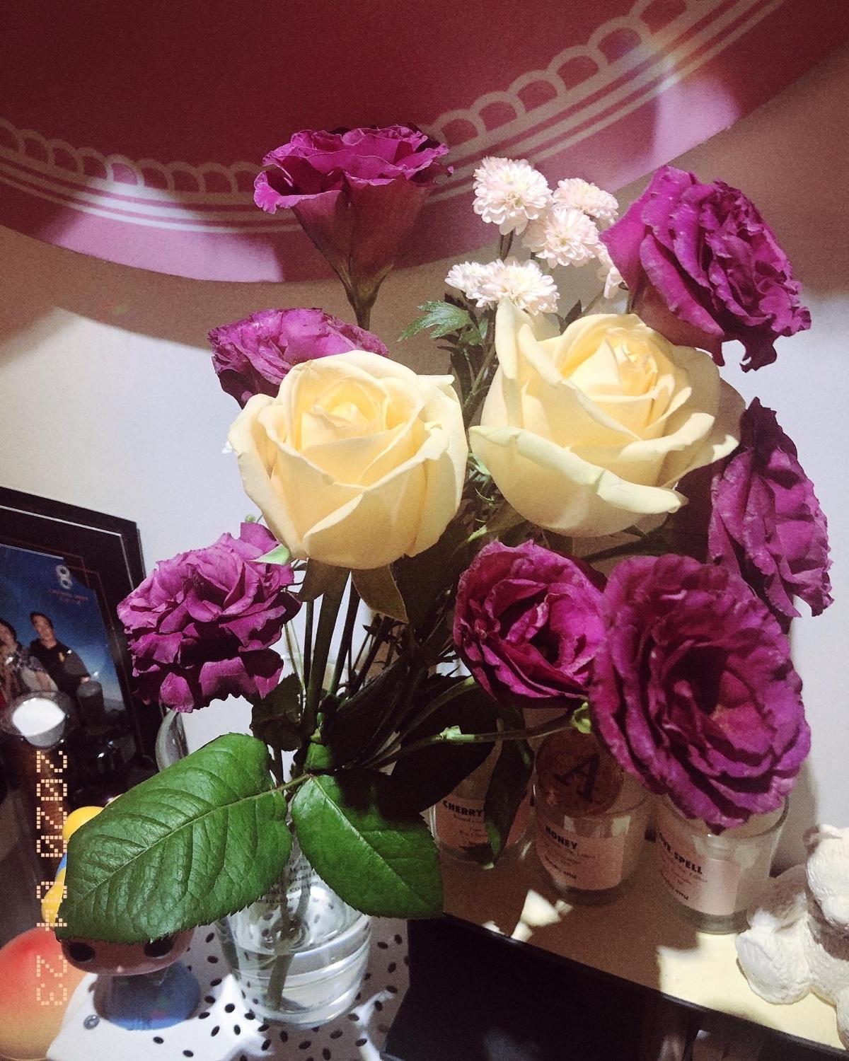 [生活·❤️] 1 / 2原來家裡旁邊的小花市可以單買🌹這樣才$110紫色桔梗+香檳色玫瑰隨意找了個透明杯放進去心情都被療癒了💓還因此整理了化妝桌🤣自己創造生活上的小愉悅🥰#有花的日子#花草日記 老公問我薪水花到哪-Miss A讓每天成為有故事的一天💕
