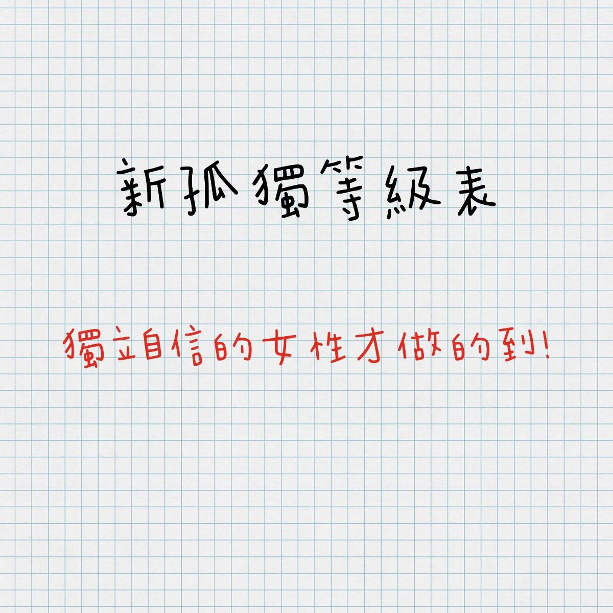 今天就想來分享給各位一張新版的孤獨等級表,但是這張表並不是貶義的意思,而是那些現代都會女子,自信又獨立的表現~