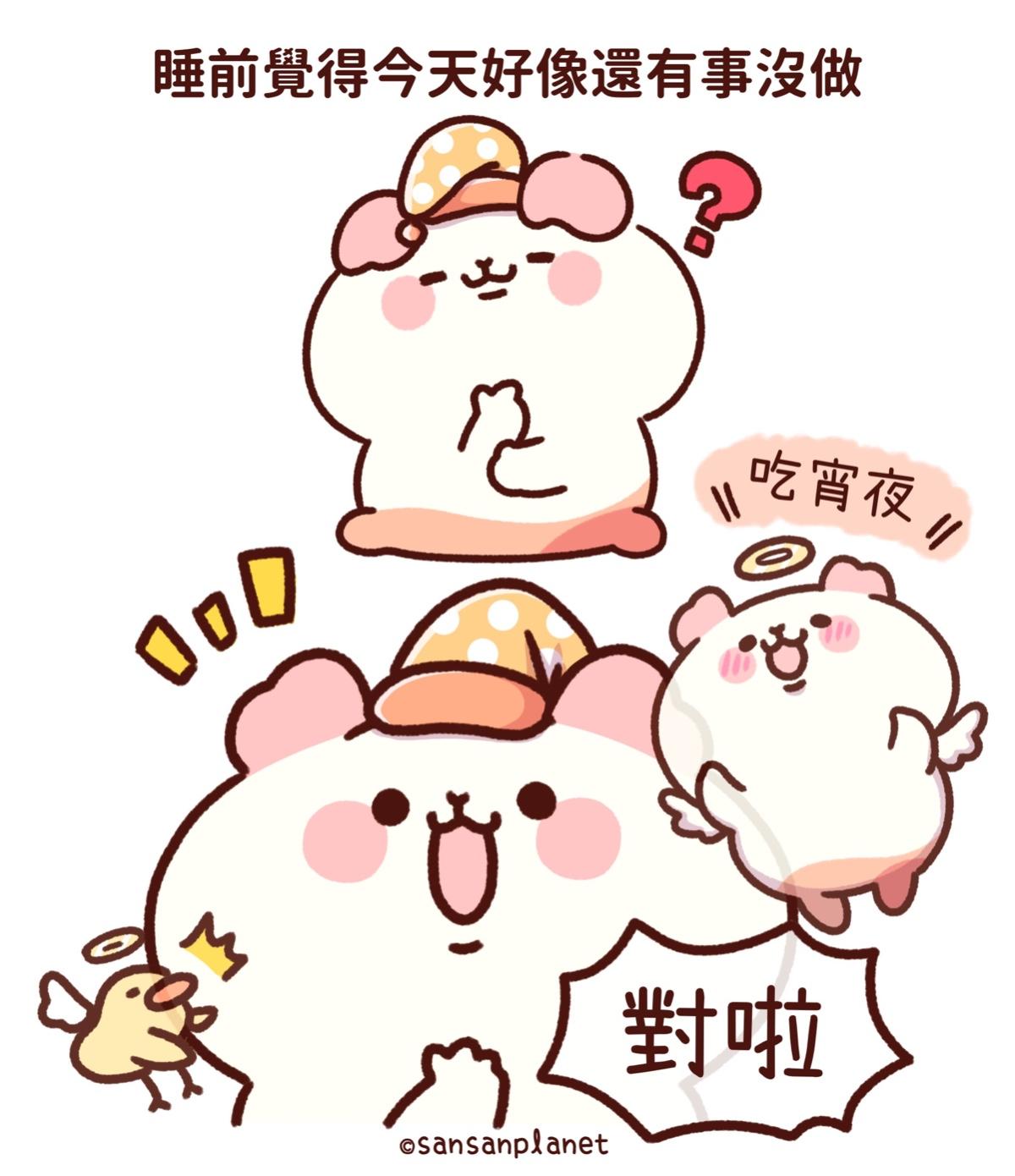 差點忘記了!🤤🤤🤤 Sansan almost forgot to eat supper before going to bed! - #肥鼠星球 #天竺鼠森森 #圖文 #插畫 #天竺鼠 #倉鼠 #hamster #guineapig #耍廢 #睡前 #宵夜 #吃飽再睡 #吃貨 #失眠 #原來如此