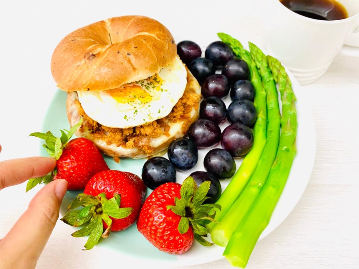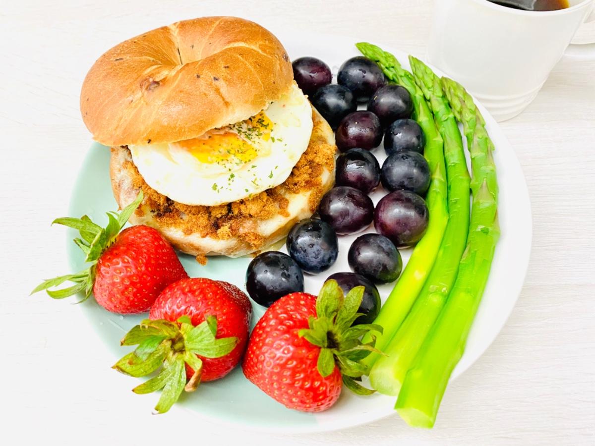 手作早午餐/朝食2020/05/05 邪惡雙層起司🧀️肉鬆貝果搭蘆筍